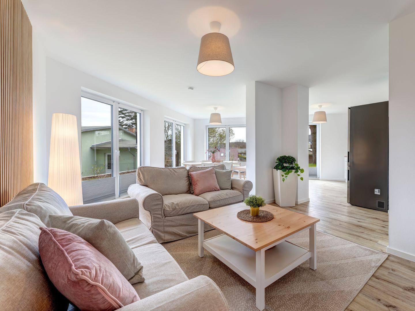 Diese stilvolle Unterkunft bietet Ihnen alles, was Sie für einen erholsamen Aufenthalt benötigen. Mit insgesamt 4 Zimmern, darunter 3 Schlafzimmer, 1 Badezimmer und 1 Gäste-WC, sowie einer offenen Küche, die sich zum großzügigen Wohnbereich hin öffnet, genießen Sie hier viel Raum und Komfort.