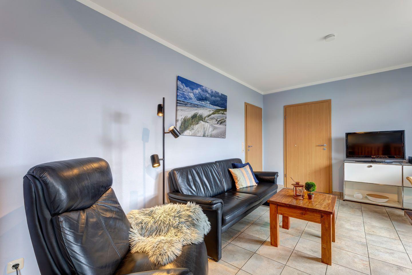 Die Ferienwohnung „Am Sonnengarten 1“ bietet mit zwei Schlafzimmern Platz für bis zu vier Personen und kombiniert modernen Komfort mit einer behaglichen Atmosphäre.