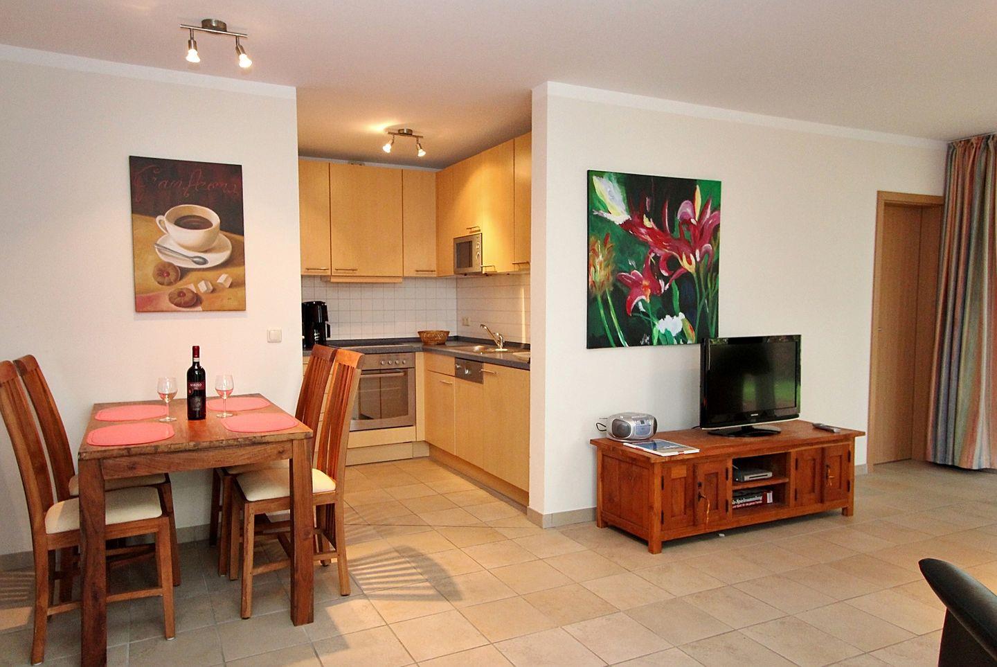 Die moderne und vollständig ausgestattete Küche bietet Ihnen alle Möglichkeiten, Ihre Lieblingsgerichte bequem zuzubereiten.