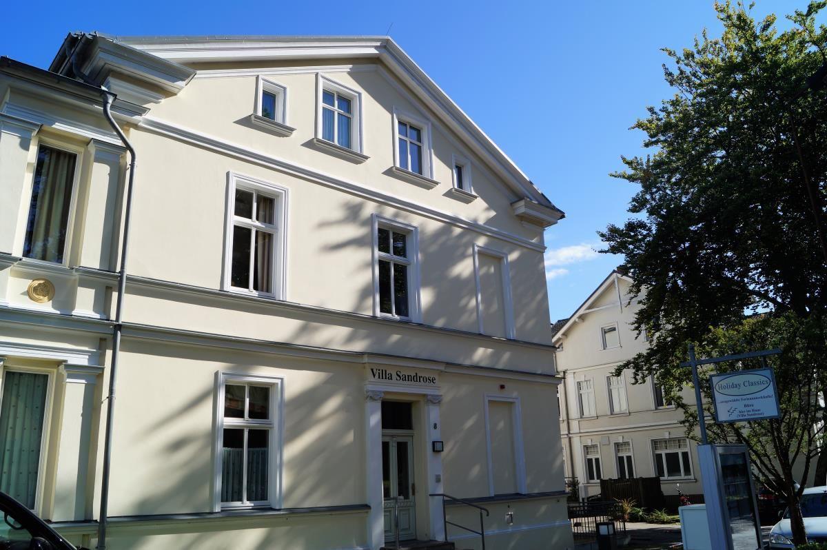 In aufwendiger Zusammenarbeit mit dem Denkmalschutz wurde diese schöne Villa der alten Zeit nachempfunden - selbstverständlich auf dem modernen Stand der Technik von heute. Besonders reizvoll ist die Lage der Villa Sandrose im "Neuen Weg": den nur wenige Meter entfernten Badestrand mit seiner breiten und gepflegten Promenade erreichen auch Kinder schnell und sicher über einen kleinen, fast autofreien Weg. Umgeben von herrschaftlichen Villen der unterschiedlichen Stilepochen lädt ein Aufenthalt in diesem Hause zu Spaziergängen in die nächste Umgebung ein. Von der Villa Sandrose aus können Sie sowohl das Zentrum von Heringsdorf als auch die Seebrücke von Ahlbeck fußläufig gut erreichen. Gerne genutzt werden von den Gästen die eigene Waschmaschine im Badezimmer sowie in der kalten Jahreszeit die schöne Badewanne. Ein PKW-Stellplatz befindet sich direkt vor der Haustür (fest reserviert). Alle Gäste können den hauseigenen WLAN-Anschluss kostenfrei nutzen.