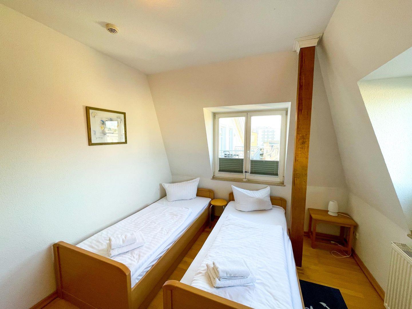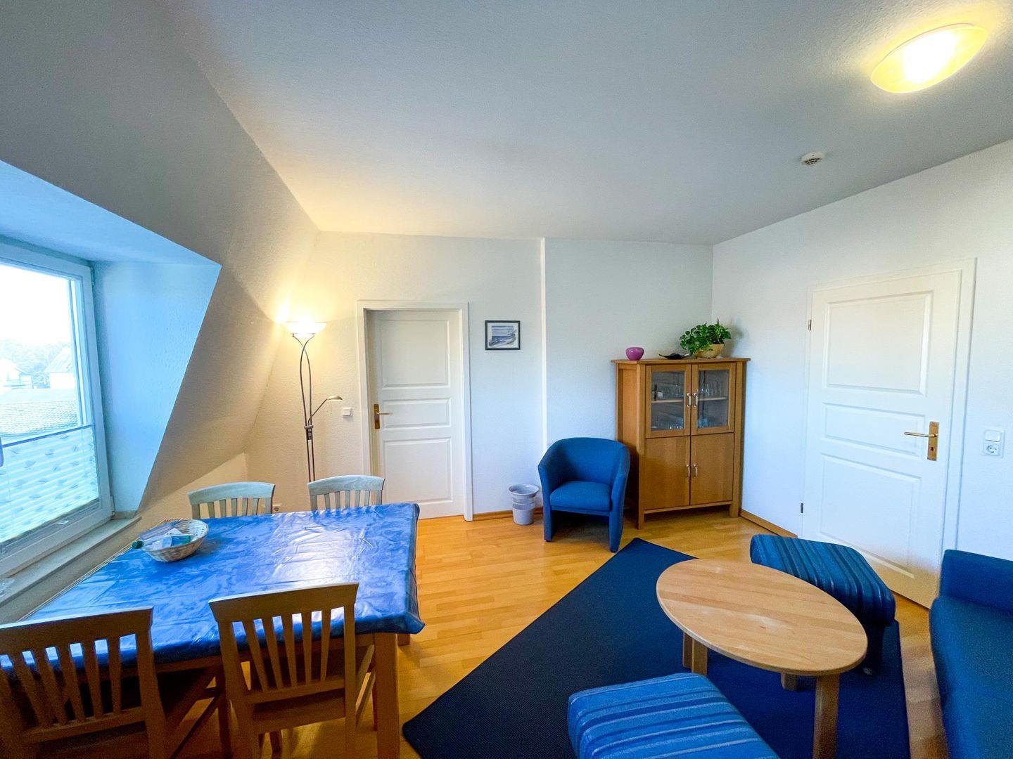 Die Dachgeschosswohnung verfügt auf einer Wohnfläche von ca. 66 m² über zwei separate Schlafzimmer, einen Wohnraum, eine separate Küche sowie ein Bad mit Dusche, Wanne und WC. Insgesamt können hier fünf Personen Urlaub schöne Ferientage verbringen. Die separate Küche ist voll ausgestattet und lässt kaum einen Wunsch offen - sogar ein Blick auf die Ostsee sei Ihnen beim Kochen gegönnt.