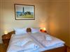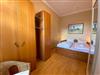 Das Schlafzimmer verfügt über ein gemütliches Doppelbett (1,60er Breite) mit einem geräumigen Einbauschrank. Idealerweise verbringen hier zwei Personen einen entspannten Urlaub. Für die dritte Person (oder zwei Kinder) steht im Wohnzimmer eine bequeme Couch mit Schlaffunktion (1,40er Breite) zur Verfügung.