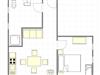 Im Wohnzimmer finden Sie eine kleine Küchenzeile und Essecke und ein für 2 Gäste nutzbares Schlafsofa.