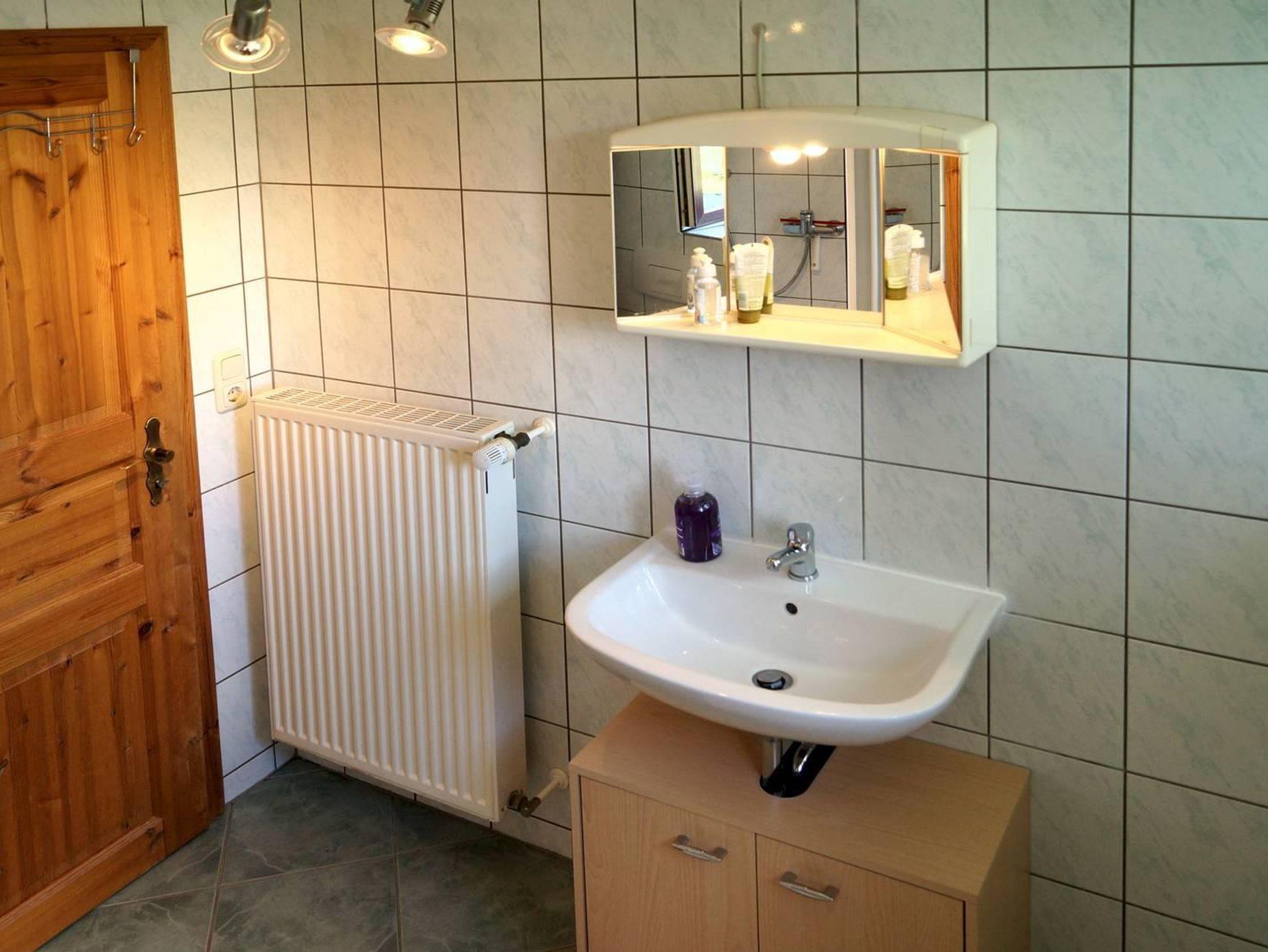 Außerdem gibt es ein seperates Bad mit Dusche, Waschbecken und WC