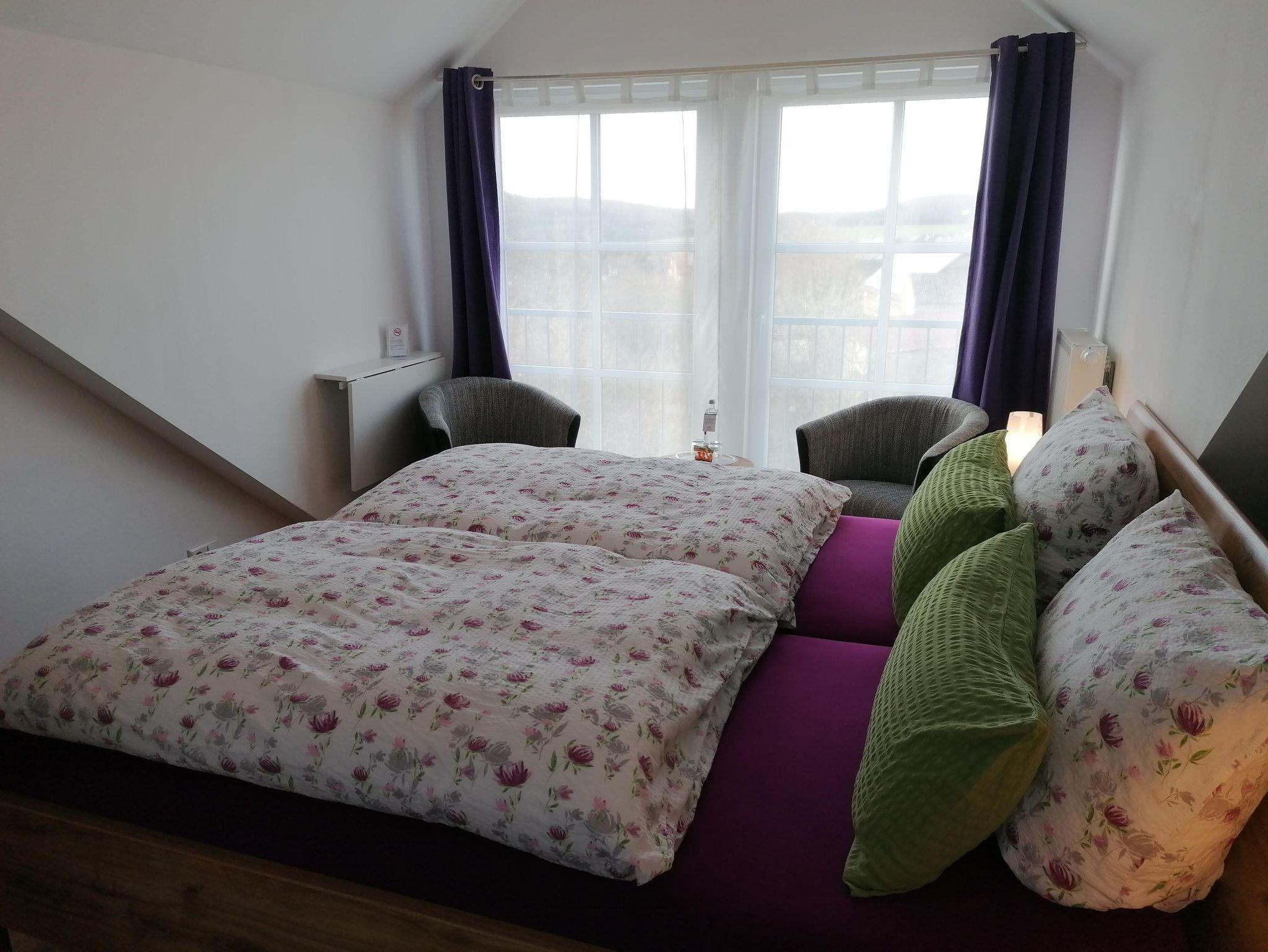 Unser ruhig gelegenes Komfort-Gaubenzimmer bietet Ihnen einen schönen Ausblick über den beschaulichen Ort Herold und das idyllische Jammertal.