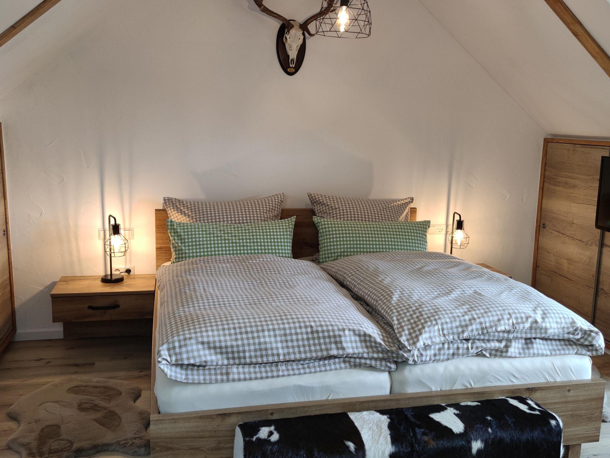 Unsere modern und stilvoll eingerichtete Ein-Zimmer-Ferienwohnung wurde erst im Sommer 2021 eröffnet und bietet höchsten Wohnkomfort für einen erholsamen Aufenthalt. Der offene, lichtdurchflutete Wohn- und Schlafbereich ist mit einem komfortablen Bett, einem Kleiderschrank sowie zwei bequemen Ruhesesseln ausgestattet.