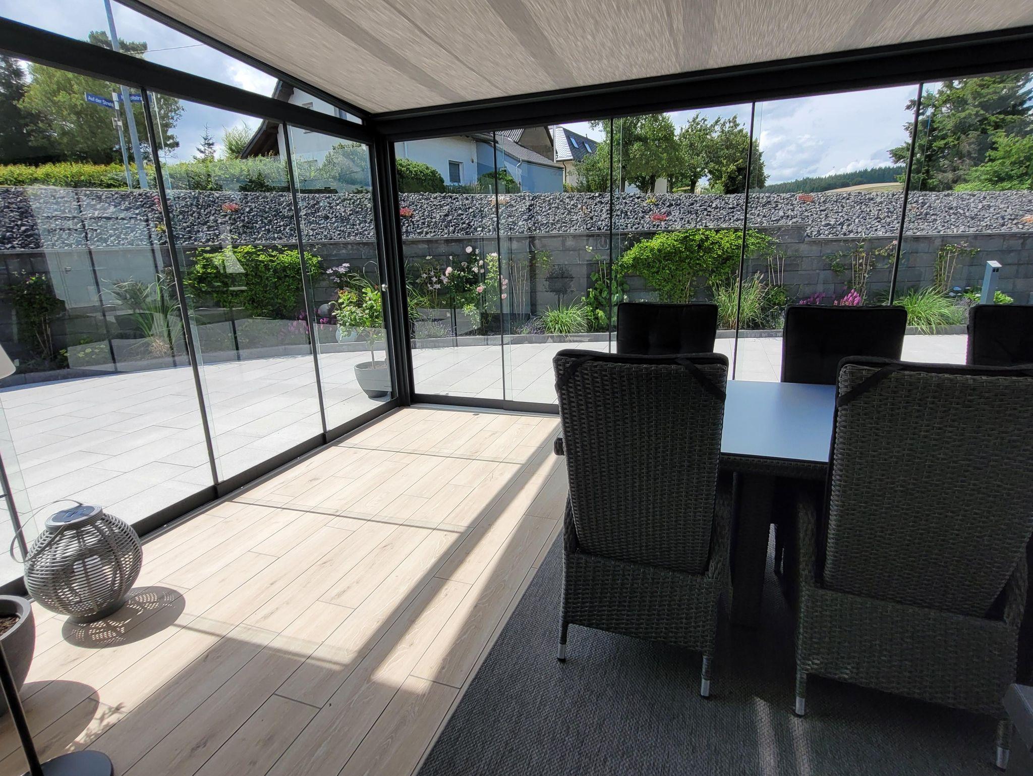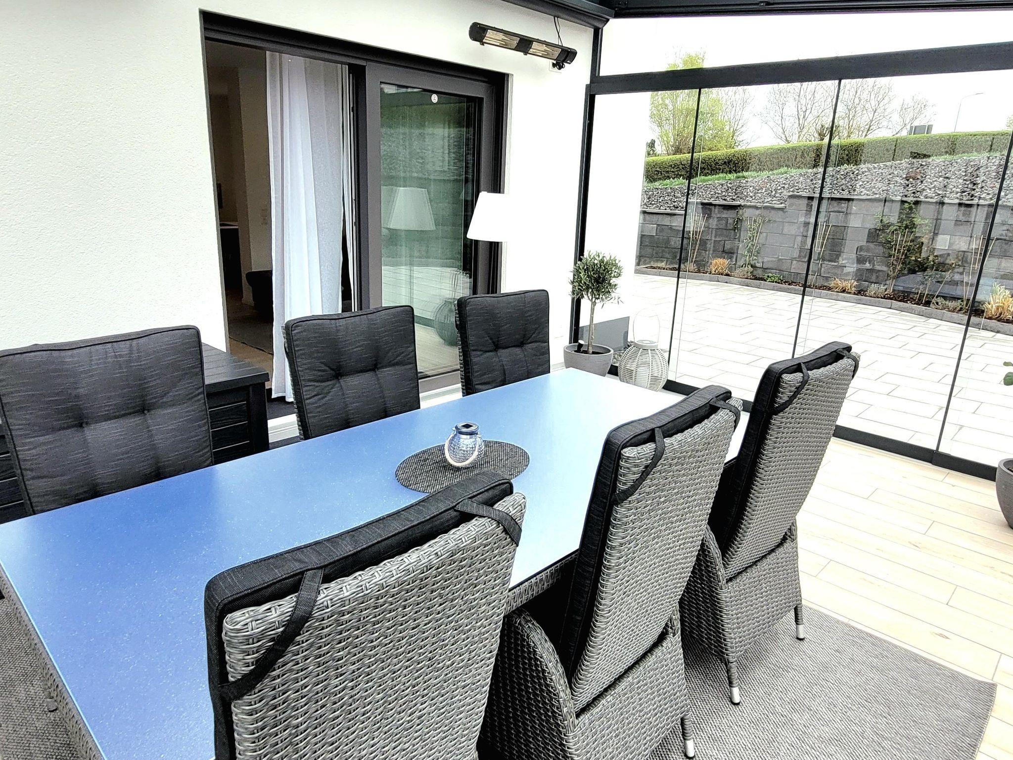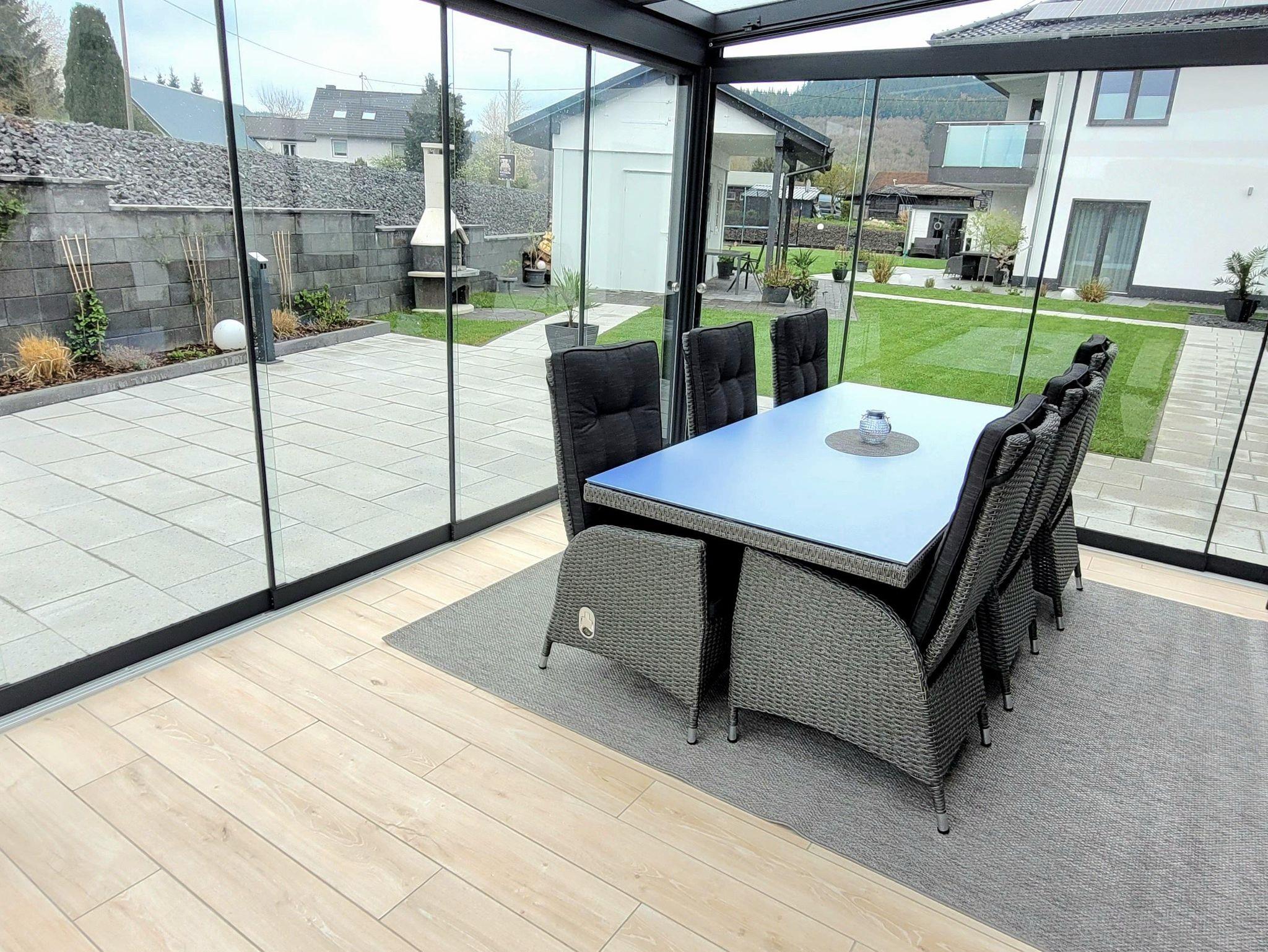 Direkt vom Wohnraum aus gelangen Sie zum 20 m² großen Wintergarten zur Alleinnutzung, hier können Sie viele gemütliche Stunden verbringen. Genießen Sie den neu gestalteten Außenbereich mit Sitzmöglichkeiten oder nutzen Sie den Grill für einen Grillabend. Diese Bereiche stehen der gemeinschaftlichen Nutzung beider Wohnungen zur Verfügung.
