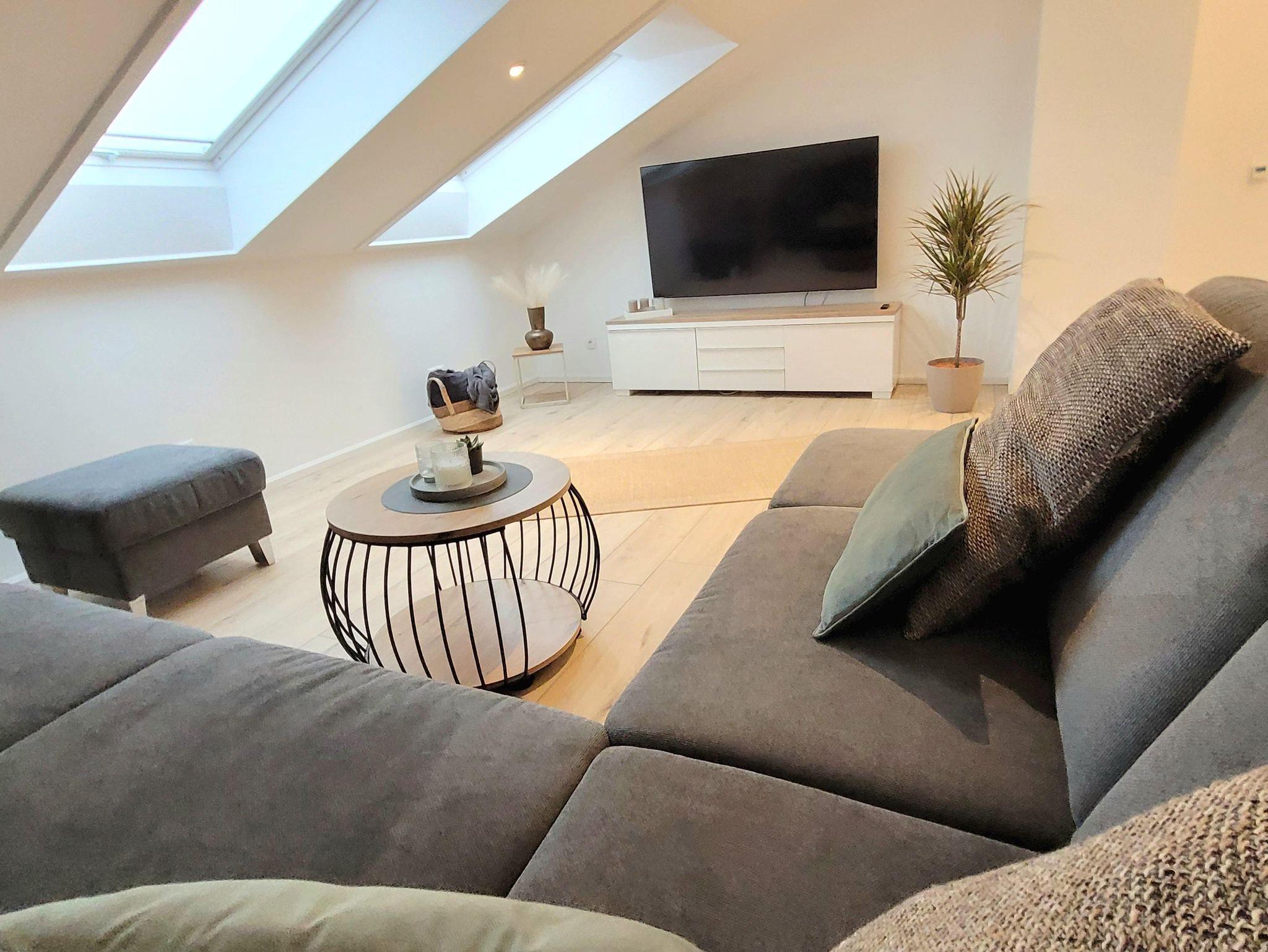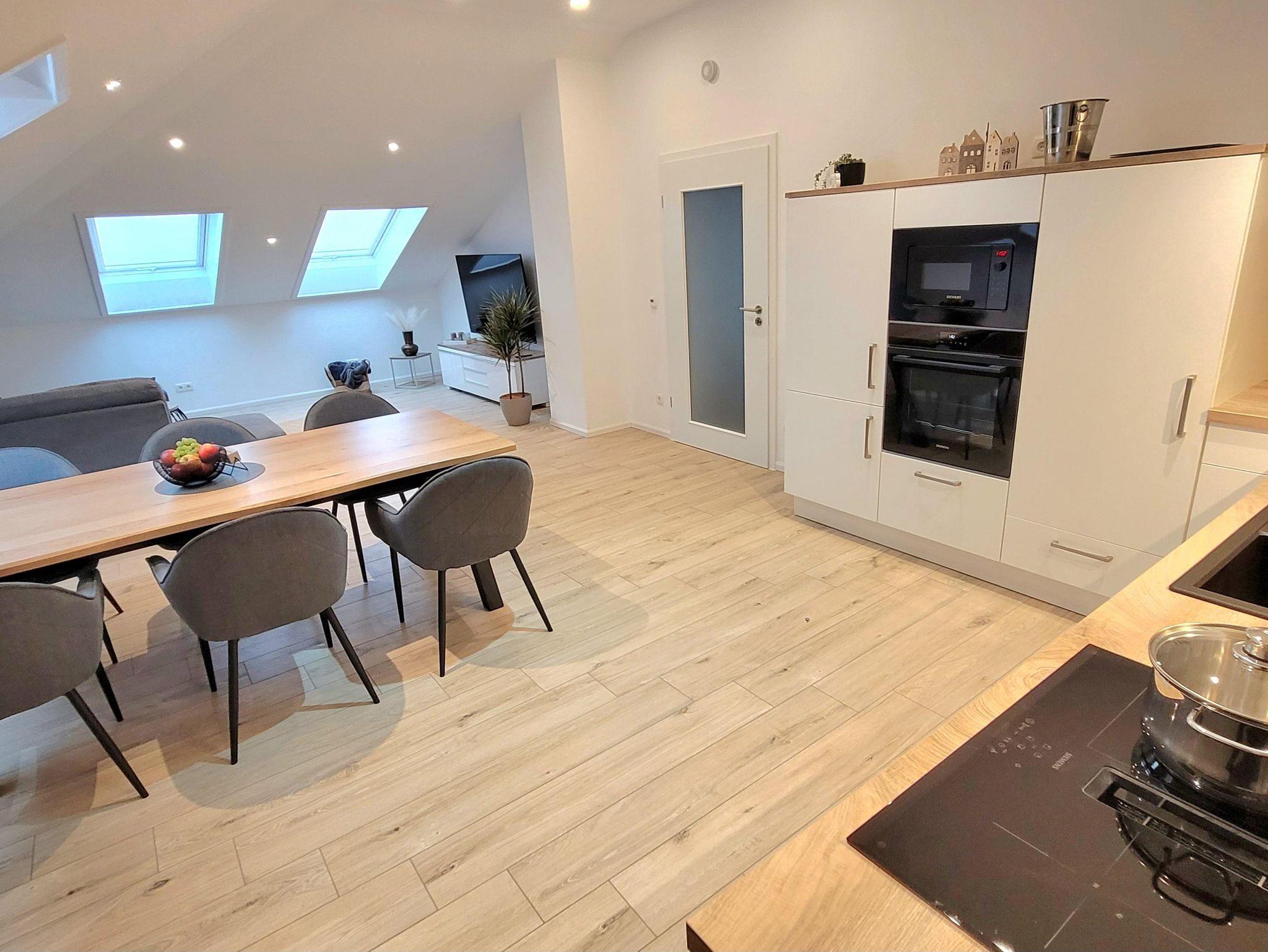 Ferienwohnung Hohe Acht Die moderne und helle mit 4 Sternen klassifizierte Dachgeschosswohnung befindet sich in der ersten Etage des Ferienhauses Ring Aurum und ist mit 84 qm für bis zu 4 Personen geeignet.