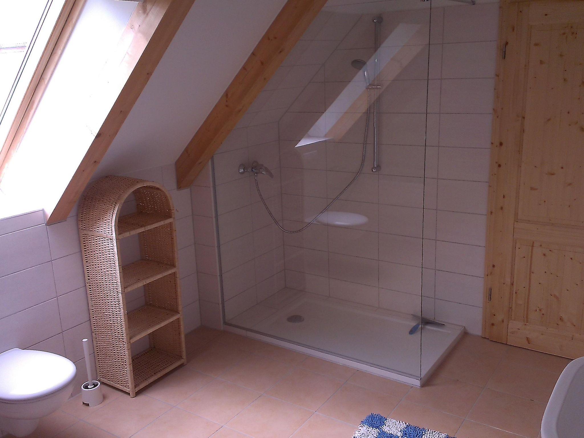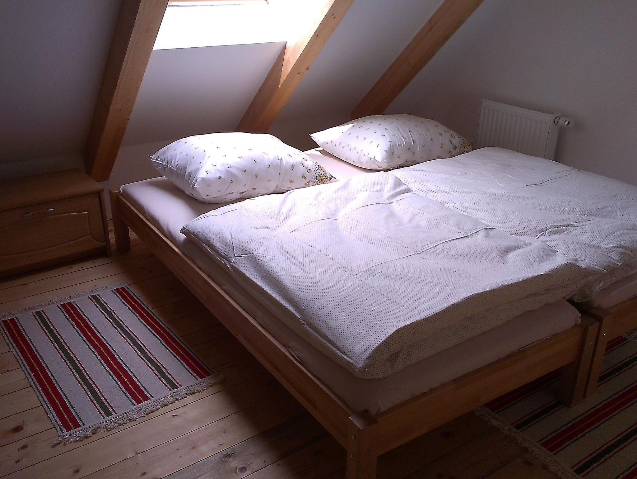 Im Dachgeschoss befindet sich ein weiterer Wohn-/ Schlafraum mit Schlafcouch und TV, das Bad mit WC, Dusche, Wanne und Waschtisch sowie ein weiteres Schlafzimmer mit 2 Einzelbetten und Zugangsmöglichkeit zum offenen Spitzboden mit Matratzenlager. Das Ferienhaus ist optimal für 2 bis 6 Personen geeignet.