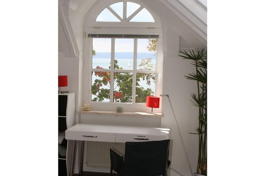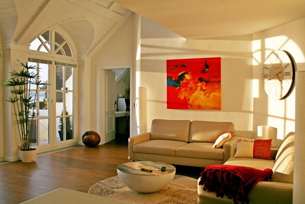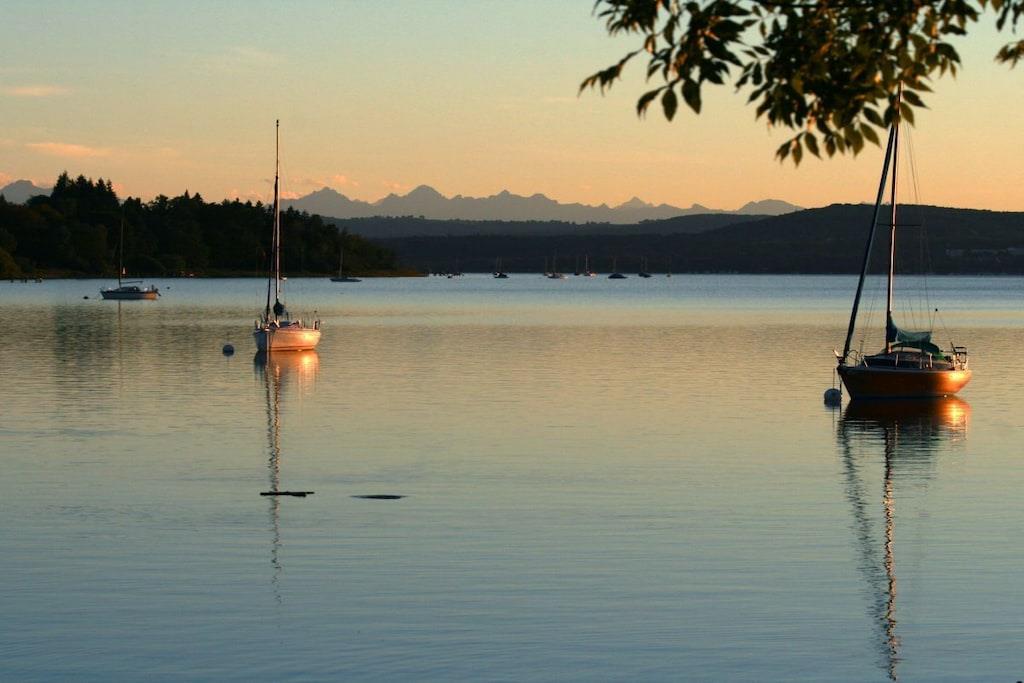 Romantisk og spektakulær - eksklusiv gallerilejlighed med direkte adgang til søen og 180° udsigt over søen og Alperne