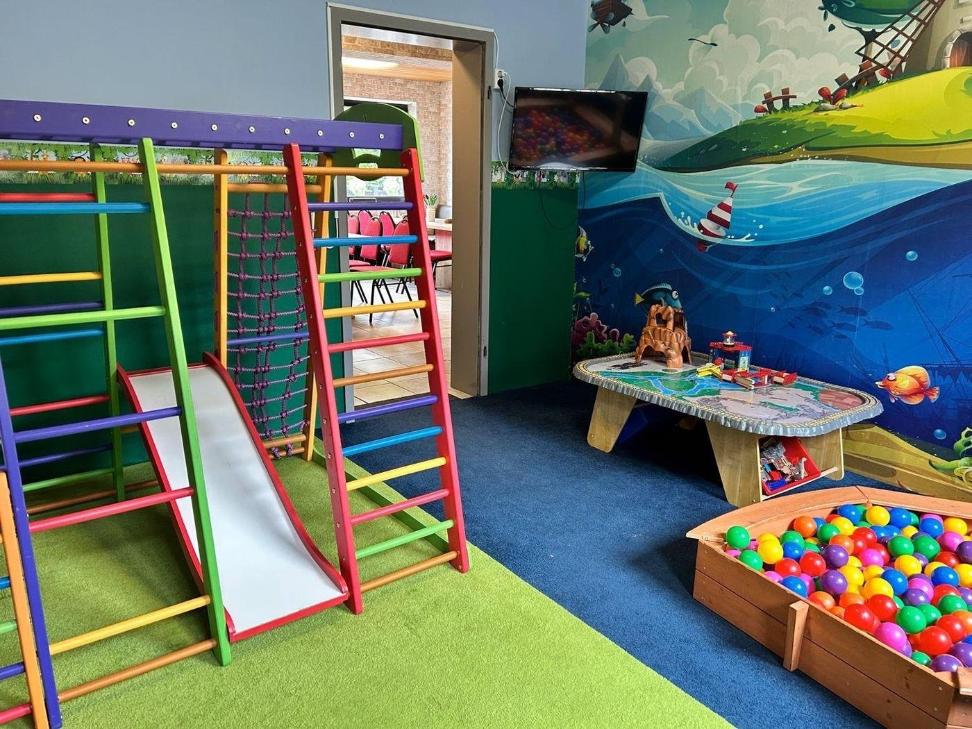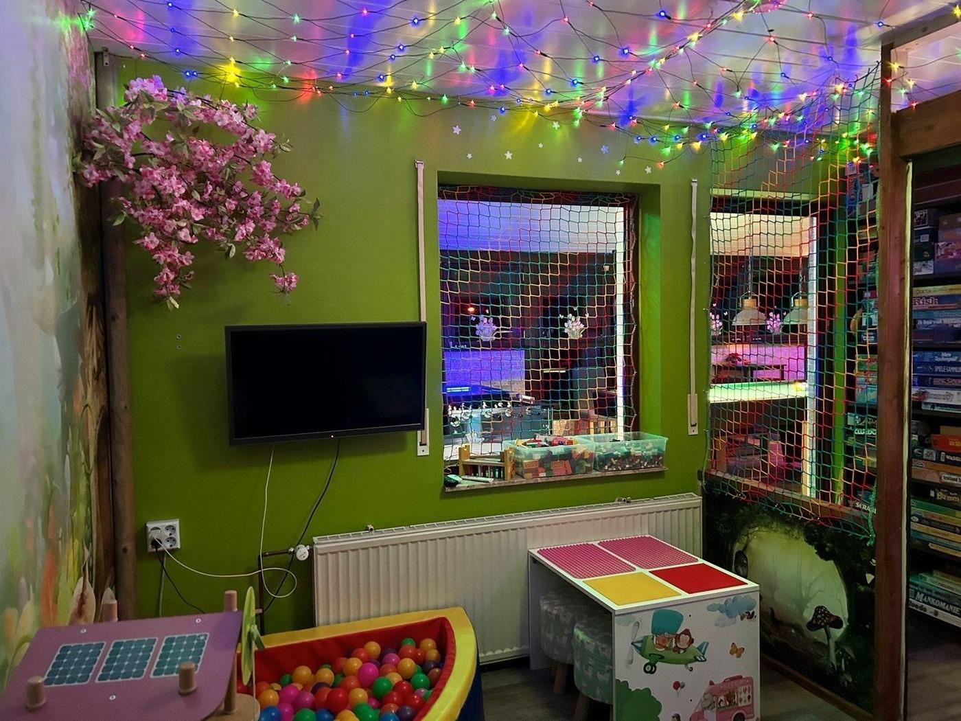 Obwohl wir mit Klein Amsterdam eine kleine, gemütliche Kneipe geschaffen haben, haben wir natürlich auch an einen schönen und sicheren Ort für die kleineren Kinder gedacht. Während die Erwachsenen ihren Getränken genießen und die Jugendlichen sich an den Spieltischen vergnügen, können sich die Kinder im märchenhaften Spielzimmer austoben, das ausgestattet ist mit: