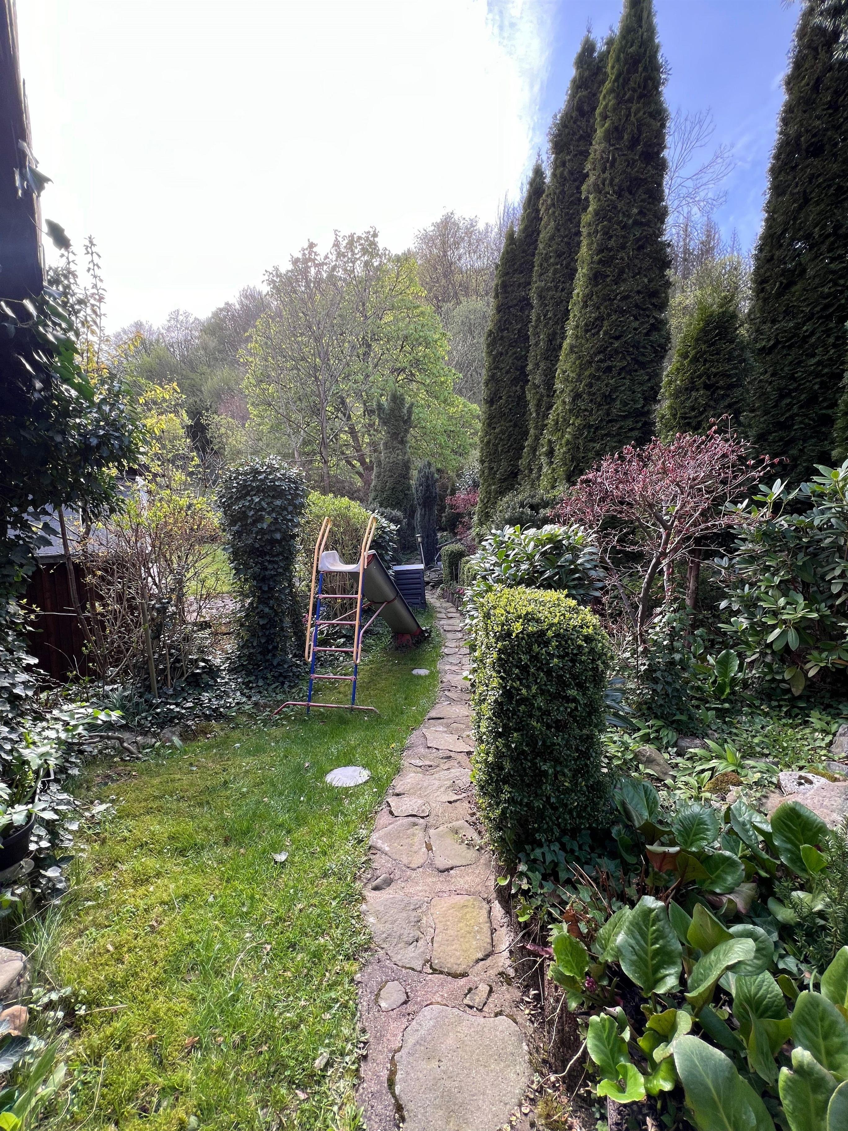 Sie haben direkten Zugang zu unserem idyllischen Garten, der direkt an einem kleinen Bach liegt. Es steht eine Sitzmöglichkeit mit Steinofengrill zur Verfügung, die von all unseren Feriengästen genutzt werden kann. Im Garten befindet sich zu dem eine Rutsche.