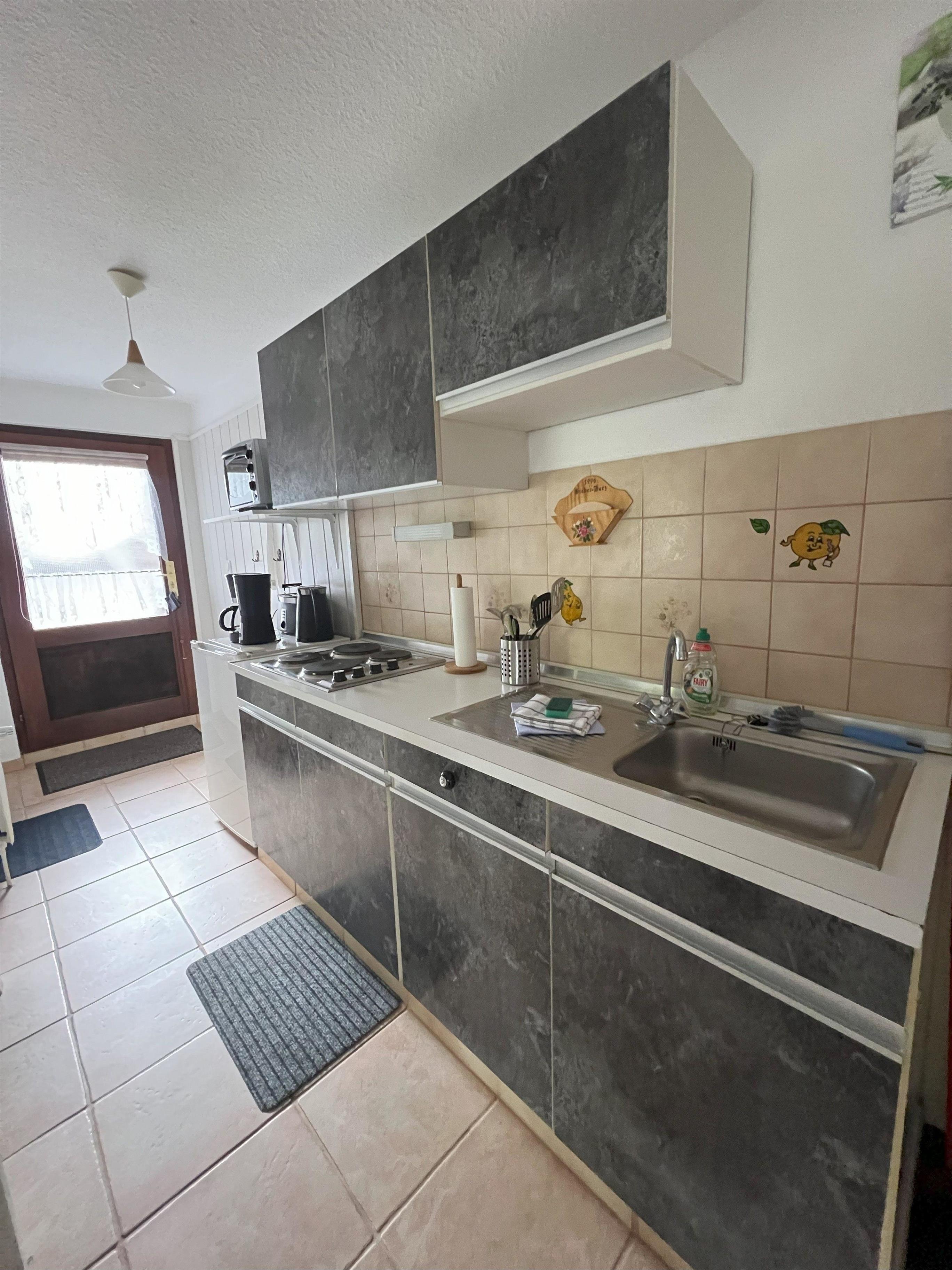 Die Ferienwohnung Nr. 4 verfügt über eine Küchenzeile, einem Schlafzimmer mit Doppelbett, einem Wohnzimmer mit TV und einem Badezimmer (WC/Dusche/Föhn). Die Küche ist wie folgt ausgestattet: Toaster, Kaffeemaschine, Wasserkocher, Kühlschrank mit Gefrierfach, Mini-Backofen, Mikrowelle und Putzutensilien.