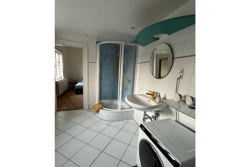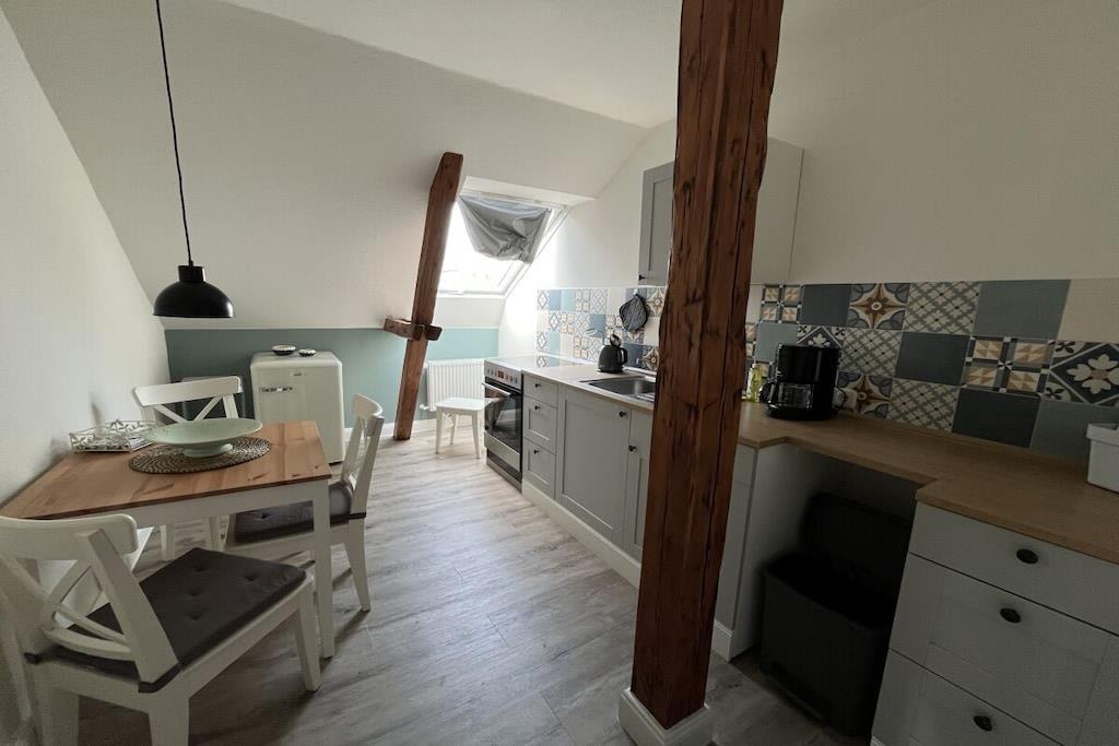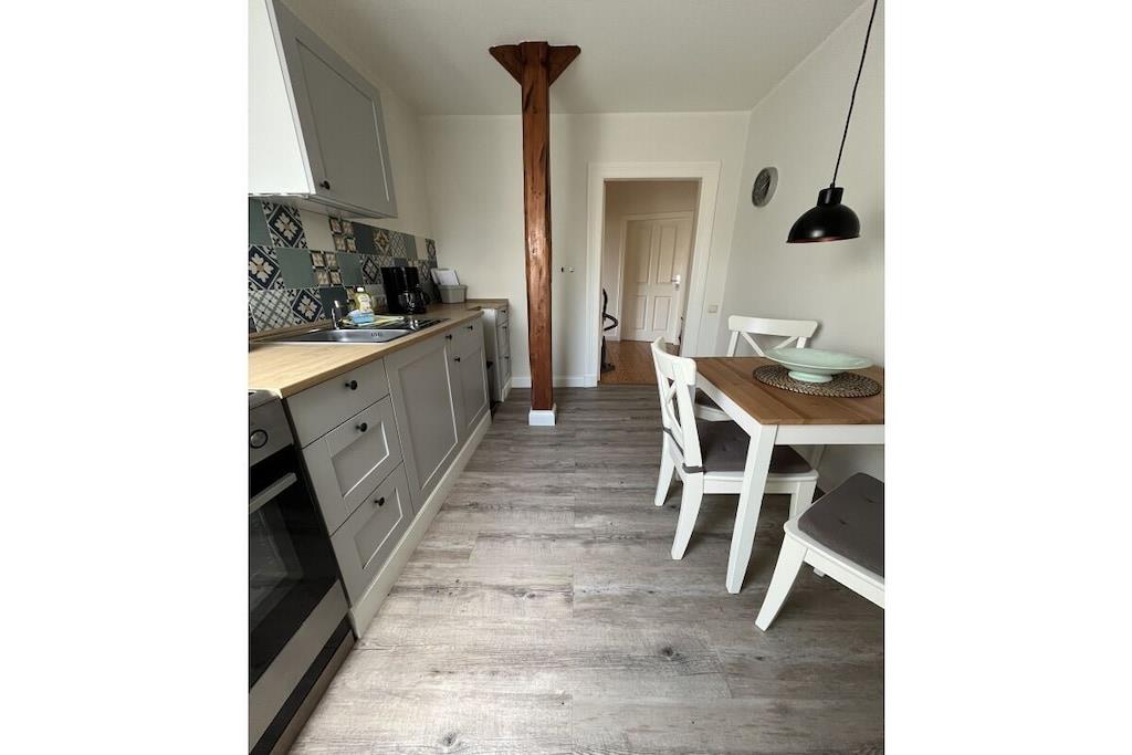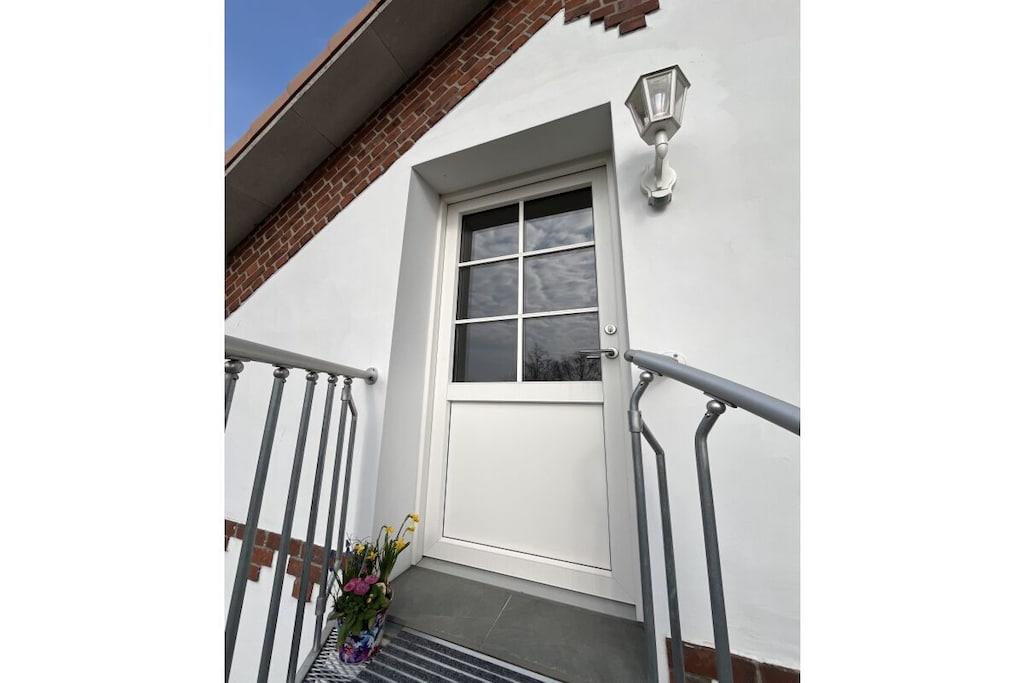 Ferielejlighed "Utspann" nær Kollmar og Glückstadt Vi udlejer vores 66 m² store lejlighed til feriegæster eller håndværkere. Lejligheden ligger på første sal i et tidligere gæstgiveri bygget i 1907. Lejligheden er komfortabelt møbleret og ligger i landlige omgivelser. Fuldt udstyret køkken med alt hvad du behøver. Soveværelset har en dobbeltseng (180x200cm), og stuen har en sovesofa med plads til en tredje person. Det store badeværelse er tilgængeligt fra soveværelset og har bruser, håndvask, toilet, hårtørrer og vaskemaskine. Parkering og brug af haven med siddepladser er mulig. Rygning og kæledyr er ikke tilladt i lejligheden!