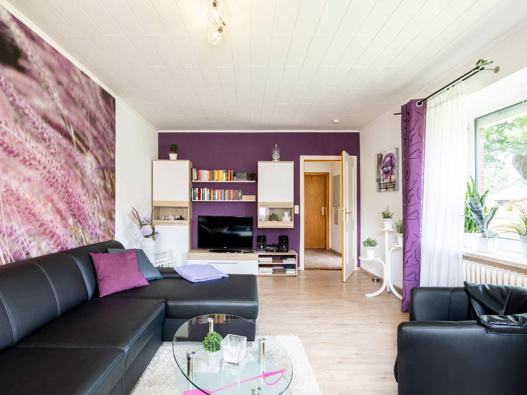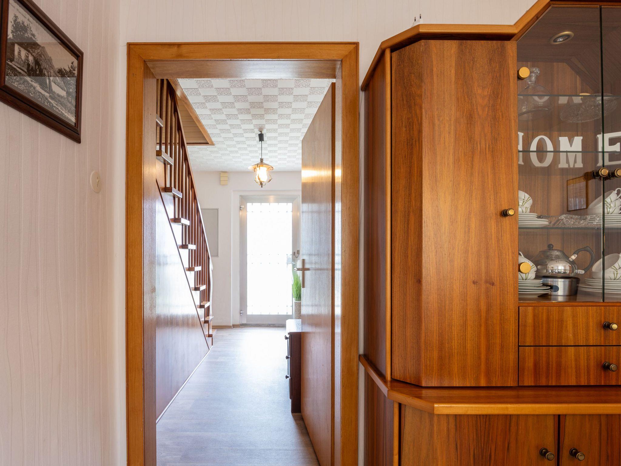 Im Erdgeschoss befinden sich eine komplett eingerichtete Wohnküche mit Essbereich: großer Tisch, gemütliches Ostfriesensofa sowie vier Stühle (auch Kinderhochstuhl vorhanden). Eine Einbauküche mit Spülmaschine, Kühlschrank inkl. Gefrierfach, Mikrowelle, Kaffeefiltermaschine, Tassimo, Toaster, Mixer, Küchenmaschine und allem was man benötigt. Ein TV-Flachbildschirm steht in der gemütlichen Wohnküche. Angrenzend das Schlafzimmer mit einem Doppelbett (1,80 m x 2,00 m) und ein 5-türiger Kleiderschrank.