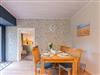 Der Wohnbereich inkl. Esszimmertisch ist ausgestattet mit einer gemütlichen Sitzgarnitur und einem Flachbildschirmfernseher.