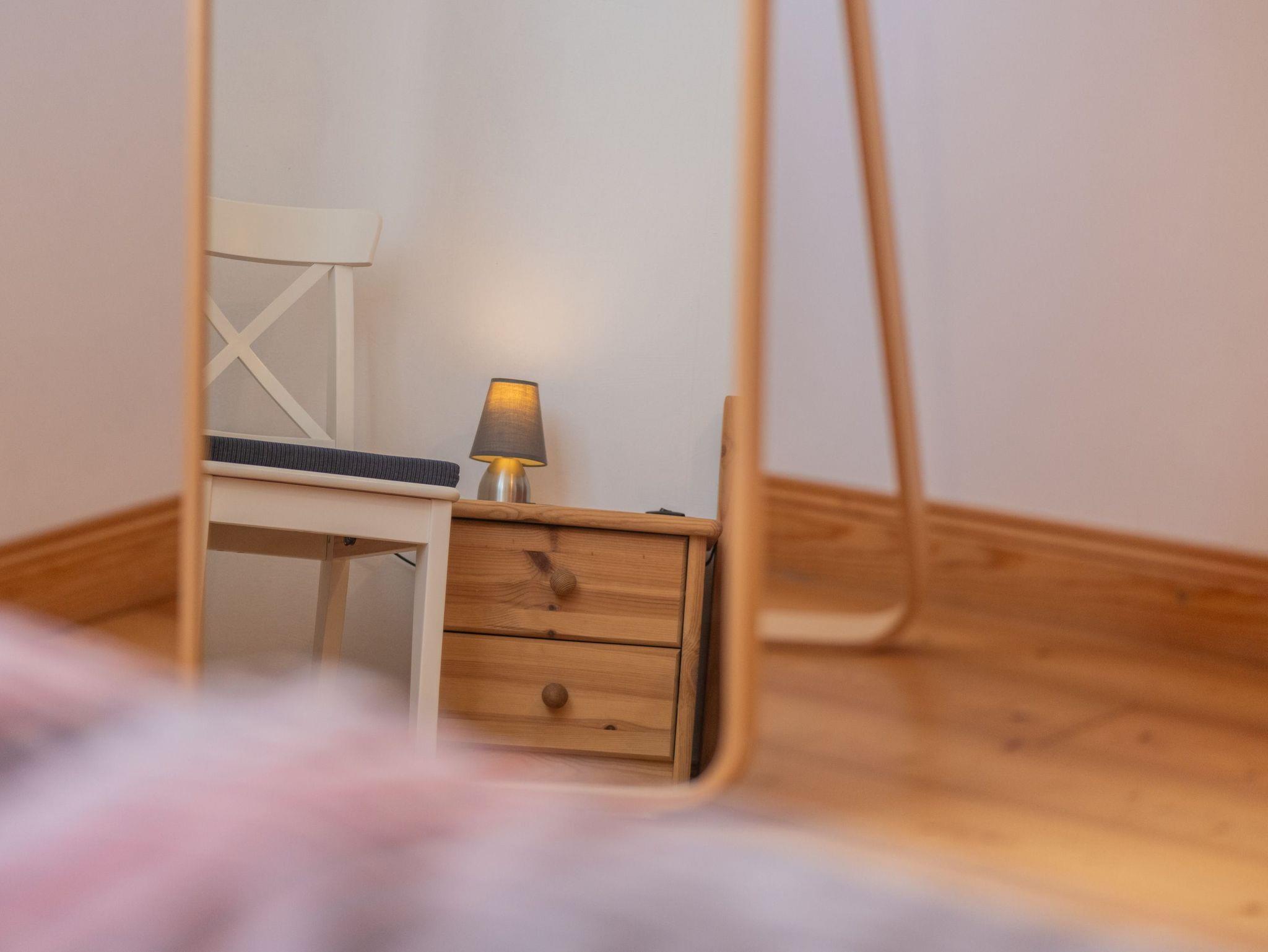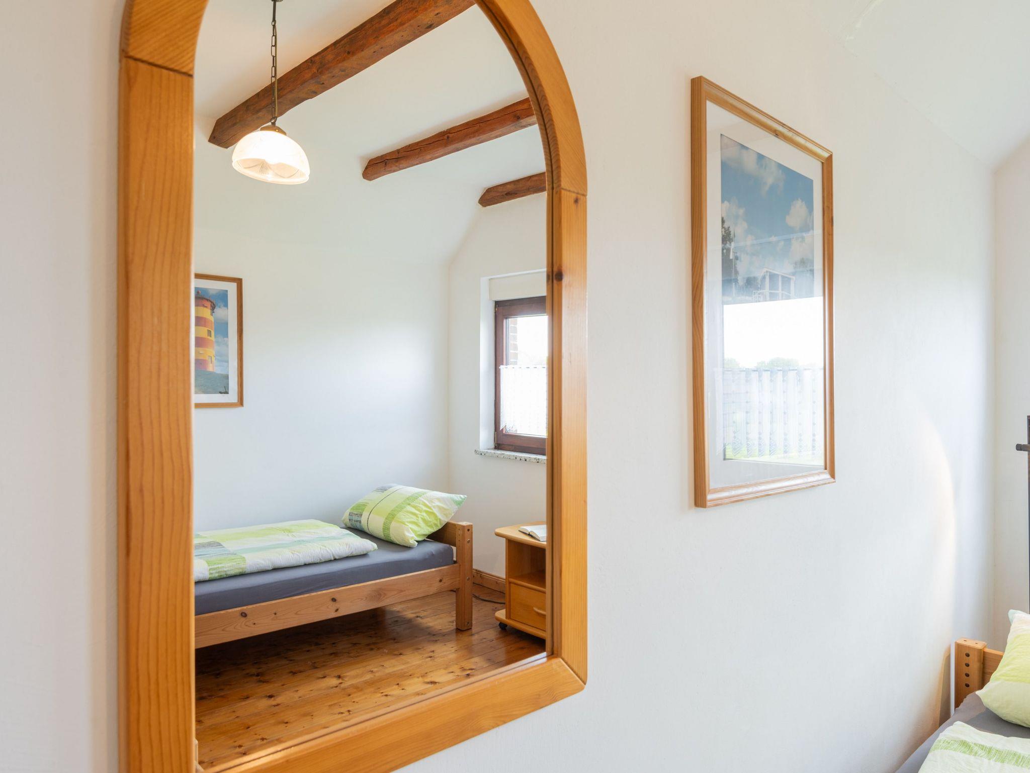 Oben befindet sich ein weiteres Schlafzimmer mit zwei Einzelbetten (0,90 x 2,00 m). Die Dachgaube, die mit dem Treppenhaus verbunden ist, bietet ein ruhiges Plätzchen um beispielsweise ein Buch zu lesen.
