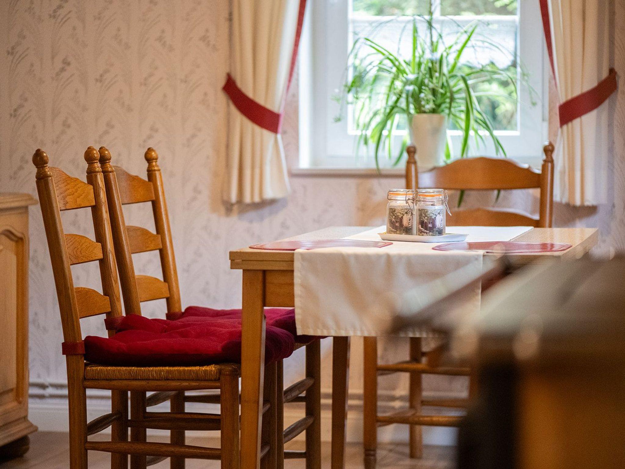 im angrenzenden Essbereich. Das Wohnzimmer mit 3er, -2er Sitzgarnitur und Sessel, Geschirr- und Bücherschrank, Fernseher (Satelitenempfang) und Original-Stuhl von Mientje, laden zum gemütlichen Verweilen ein. Über WLAN können Sie im gesamten Wohnbereich das Internet nutzen.
