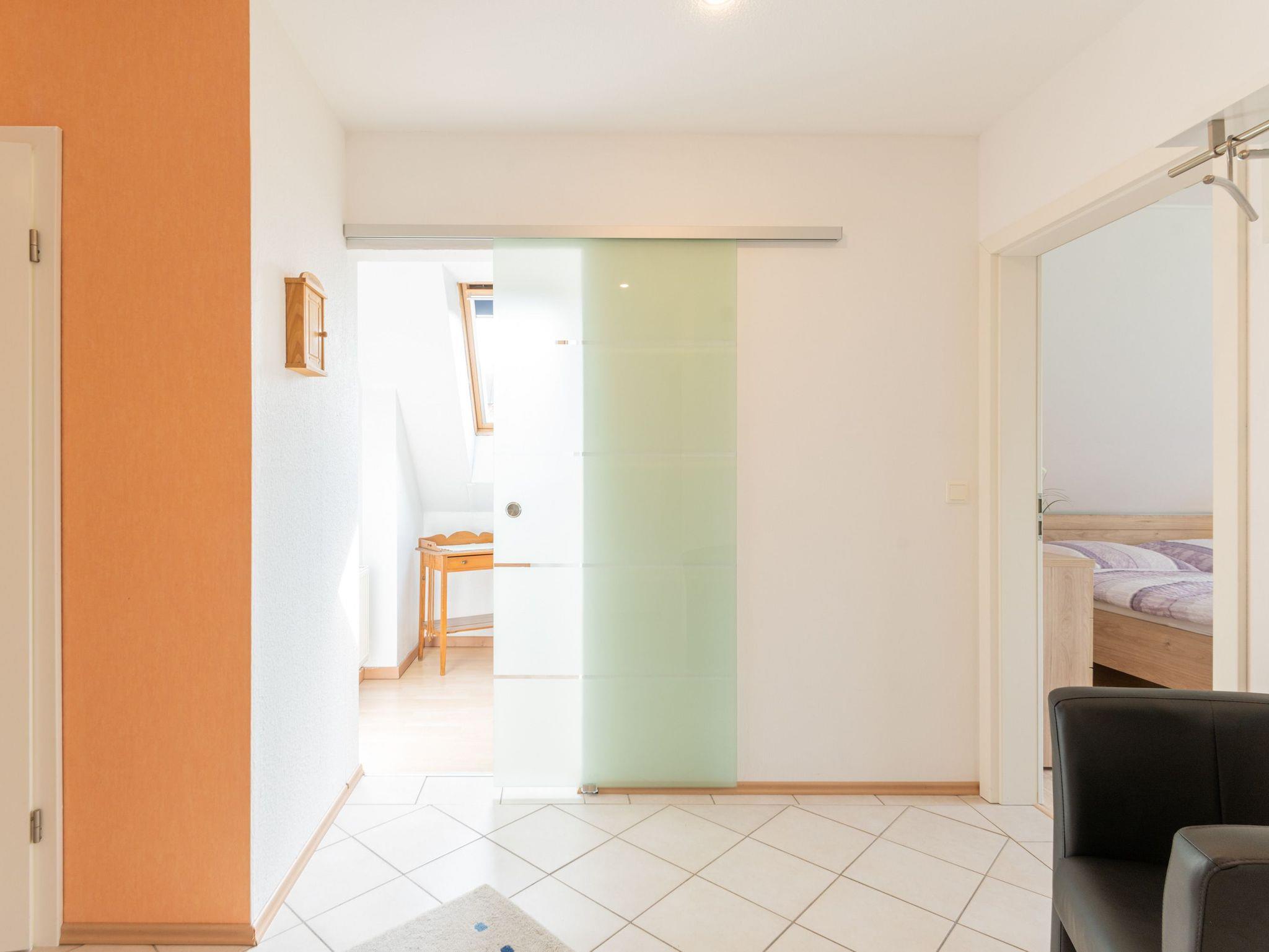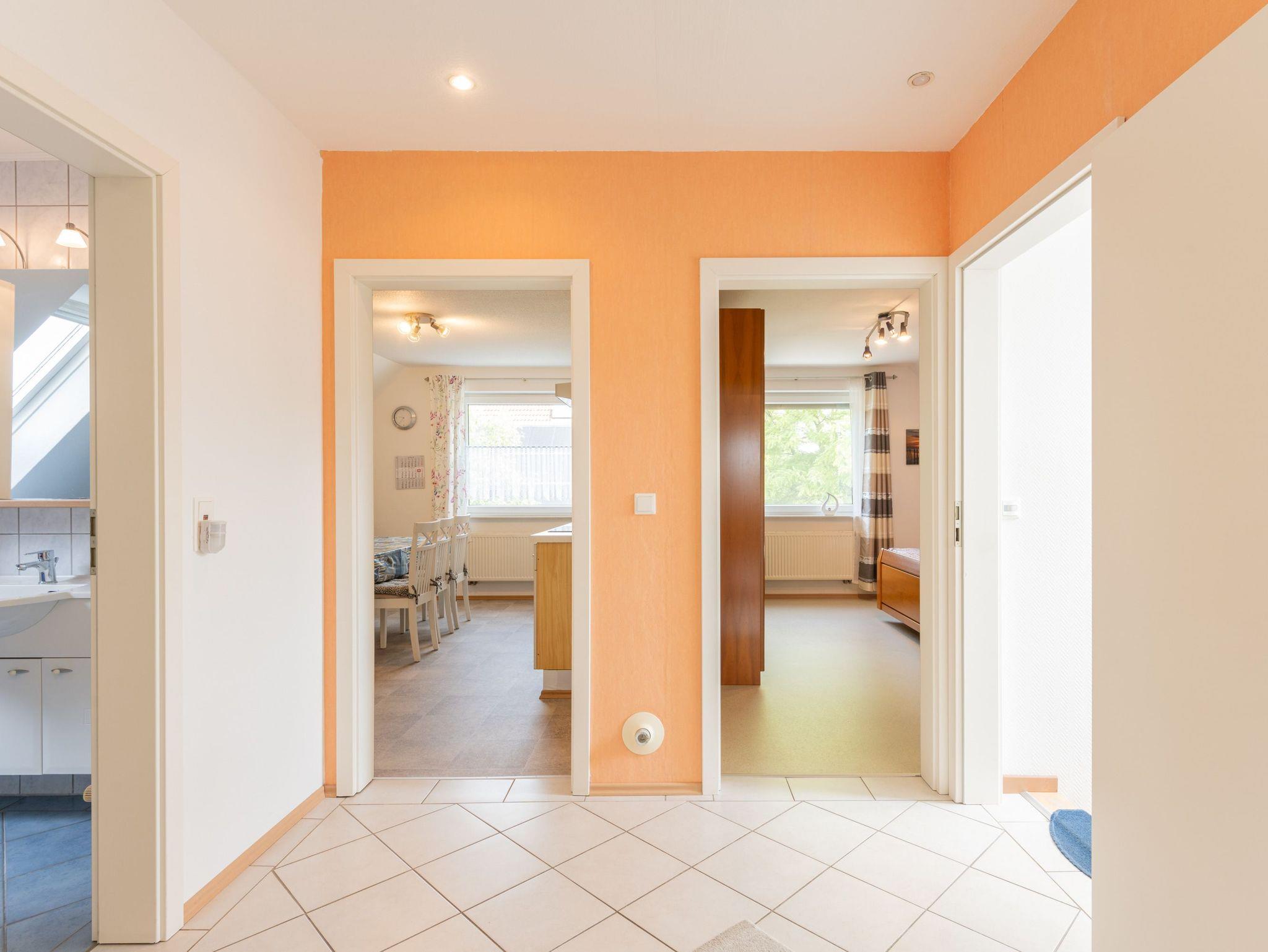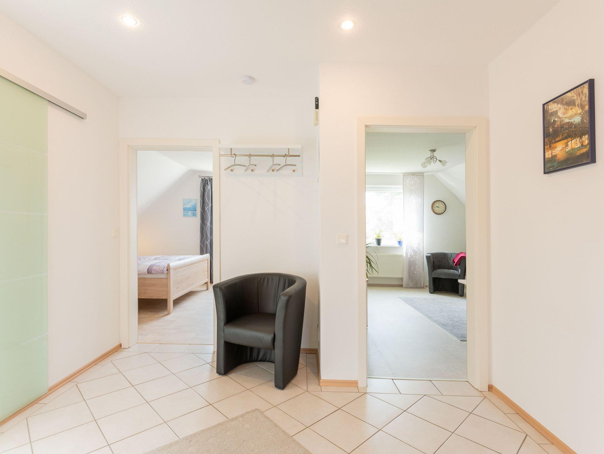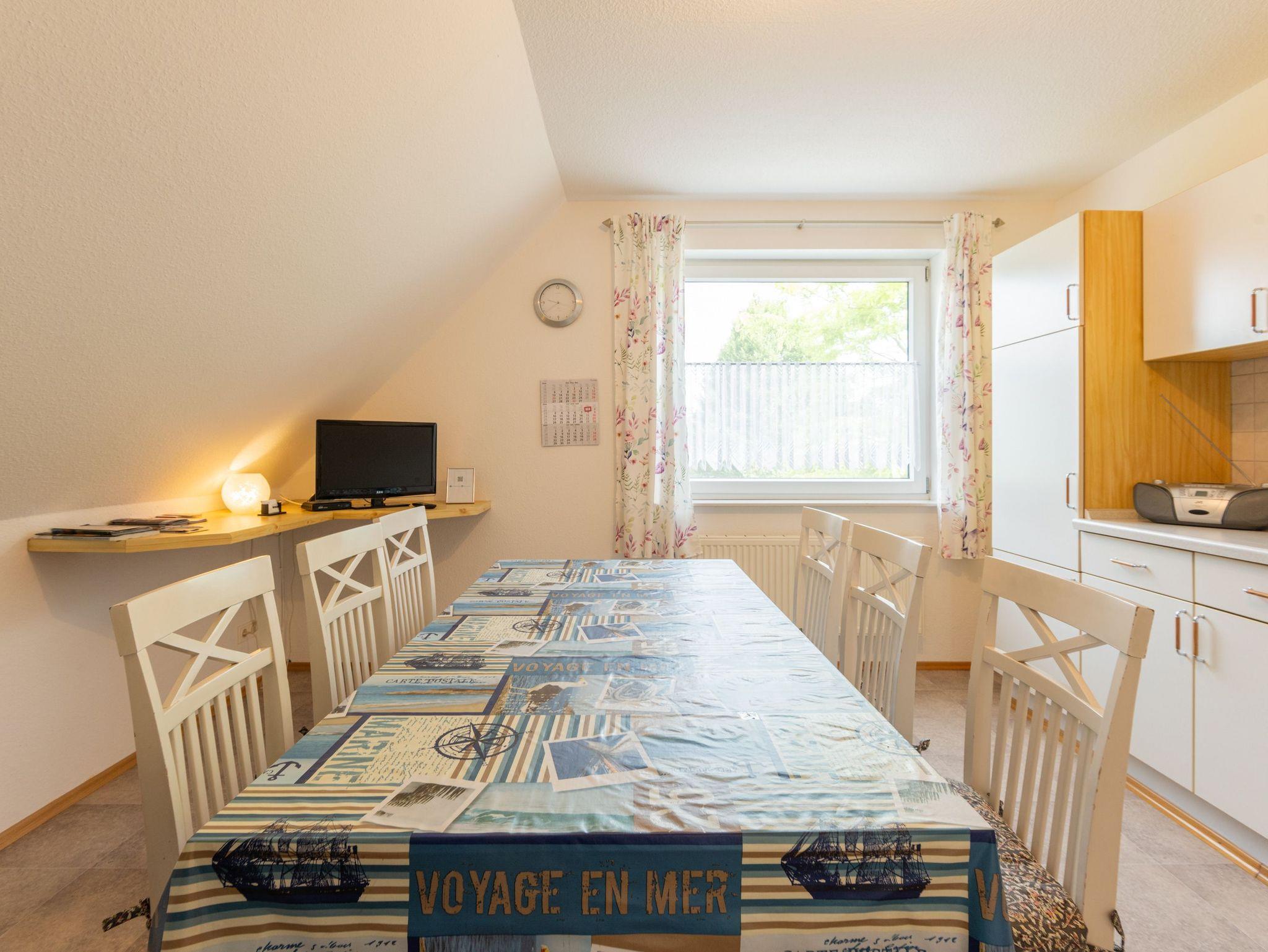 Schöne geräumige Ferienwohnung (90qm) im ersten Obergeschoss. Die Ferienwohnung verfügt über einen sep. Eingang und Aufgang. Eine komplett eingerichtete Küche mit allem, was benötigt wird. incl. E-Herd, Spülmaschine, Kühlschrank, Gefrierschrank, Kaffeemaschine, Mikrowelle, usw. Der Essbereich verfügt über einen großen Tisch und 6 Stühlen und einen TV-Flachbildschirm. Das Wohnzimmer ist mit einer gemütlichen Sitzgruppe und ausreichend Sitzgelegenheiten sowie einen TV -Flachbildschirm ausgestattet.