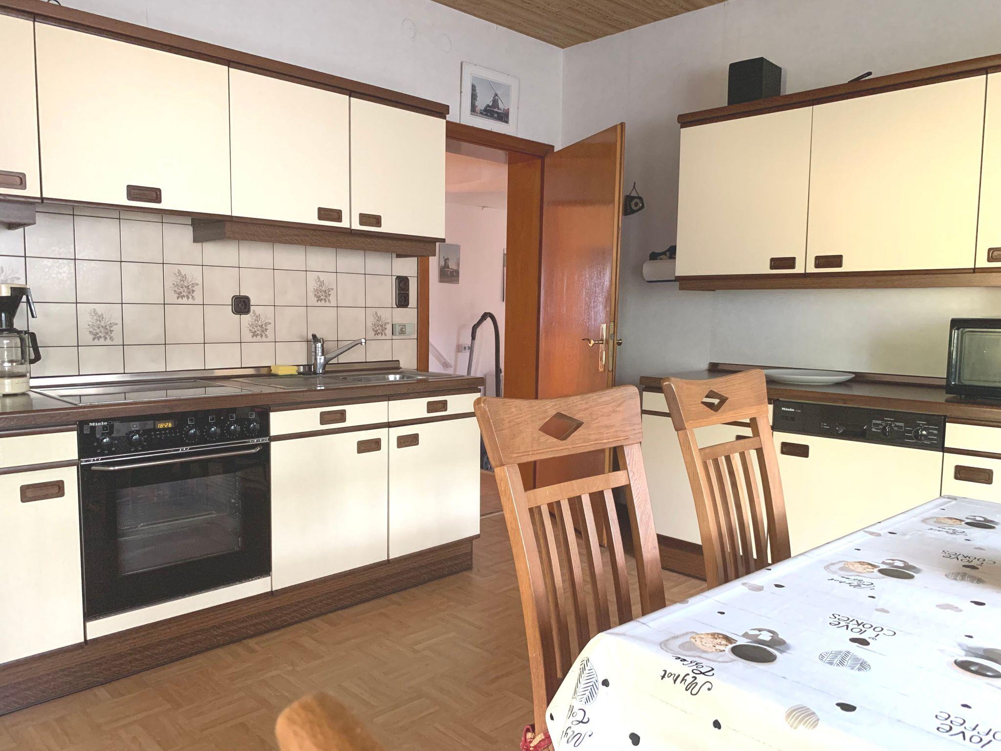 Die Wohnküche ist ausgestattet mit Backofen, Ceranfeld, Kühlschrank, Mikrowelle und Spülmaschine. Auch nahezu alle Küchengeräte sind vorhanden. (Kaffeemaschine, Toaster, Wasserkocher, Senseo, Eierkocher)