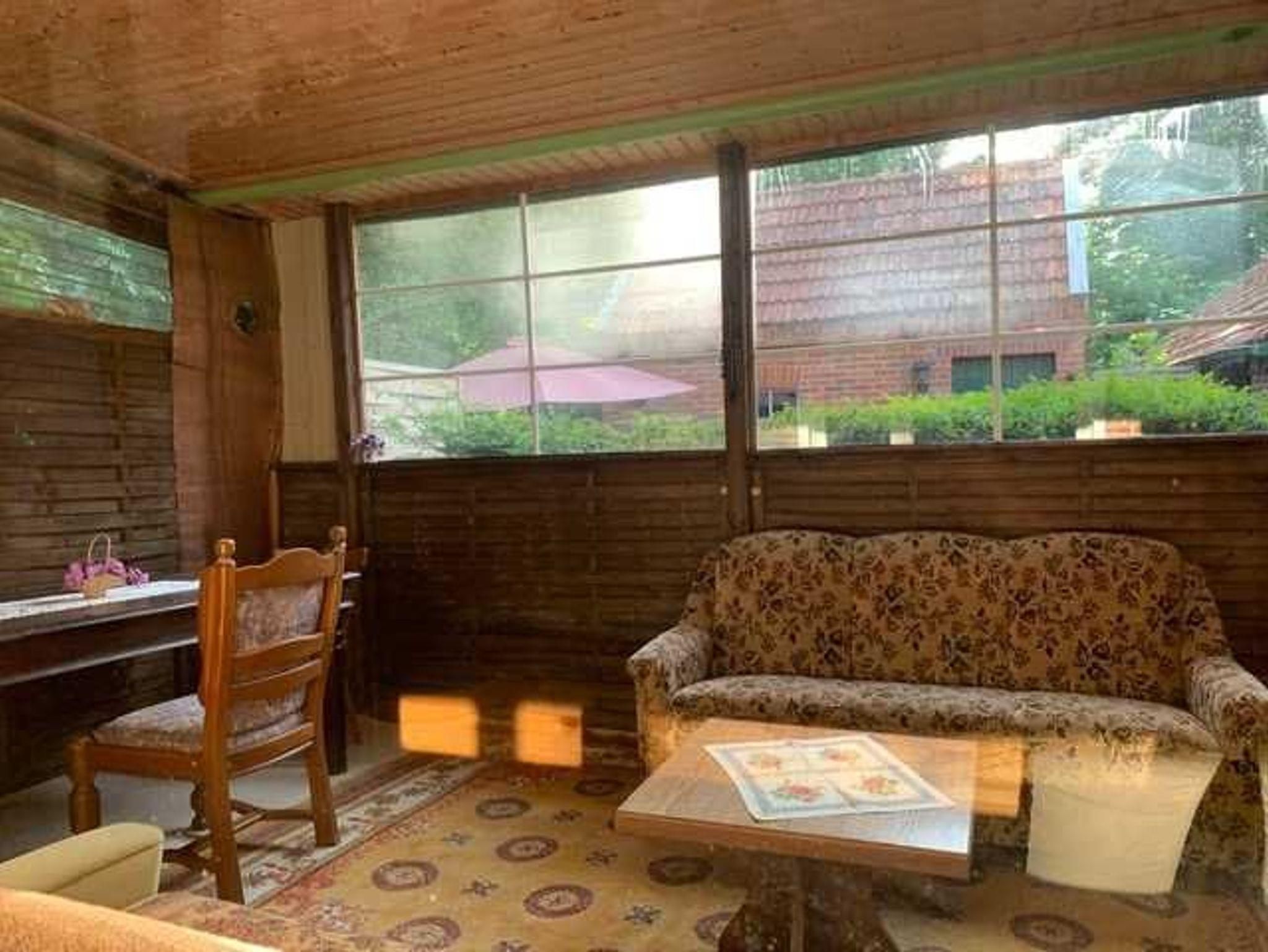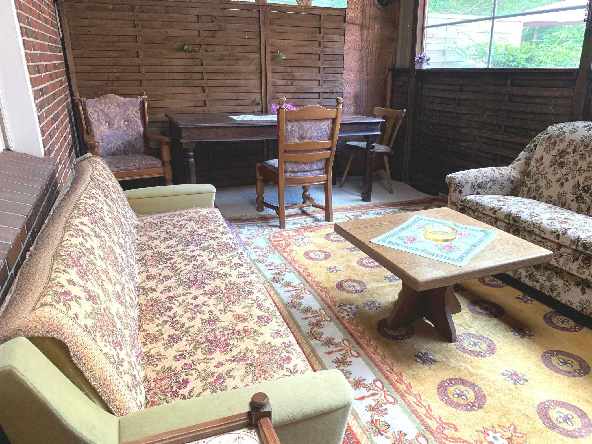 Im Außenbereich gibt es eine Terrasse mit Gartenmöbel, Grill, Sonnenschirm und einen überdachten Wintergarten. Im Backhaus steht auch eine Waschmaschine die gegen Unkostenerstattung genutzt werden kann zur Verfügung.