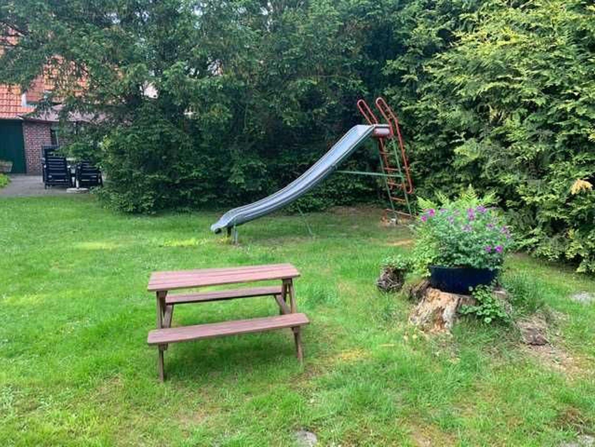 Es sind für die Kinder auch eine Rutsche und eine Schaukel vorhanden.