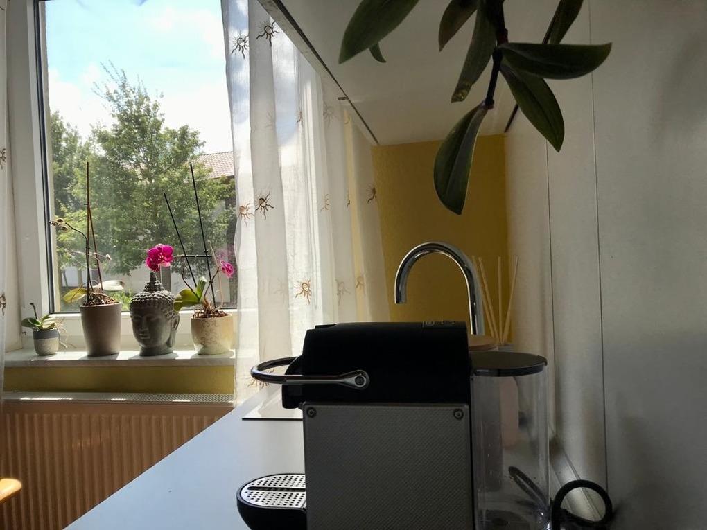 Gemütliches Loft-Apartment mit Geschirrspüler, Mikrowelle, Kaffeemaschine, Wasserkocher und Toaster. Bei Aufenthalten ab 8 Nächten kann auf Anfrage eine Waschmaschine benutzt werden. Ebenso bieten wir auf Anfrage ein leckeres Frühstück für 15 € pro Person.
