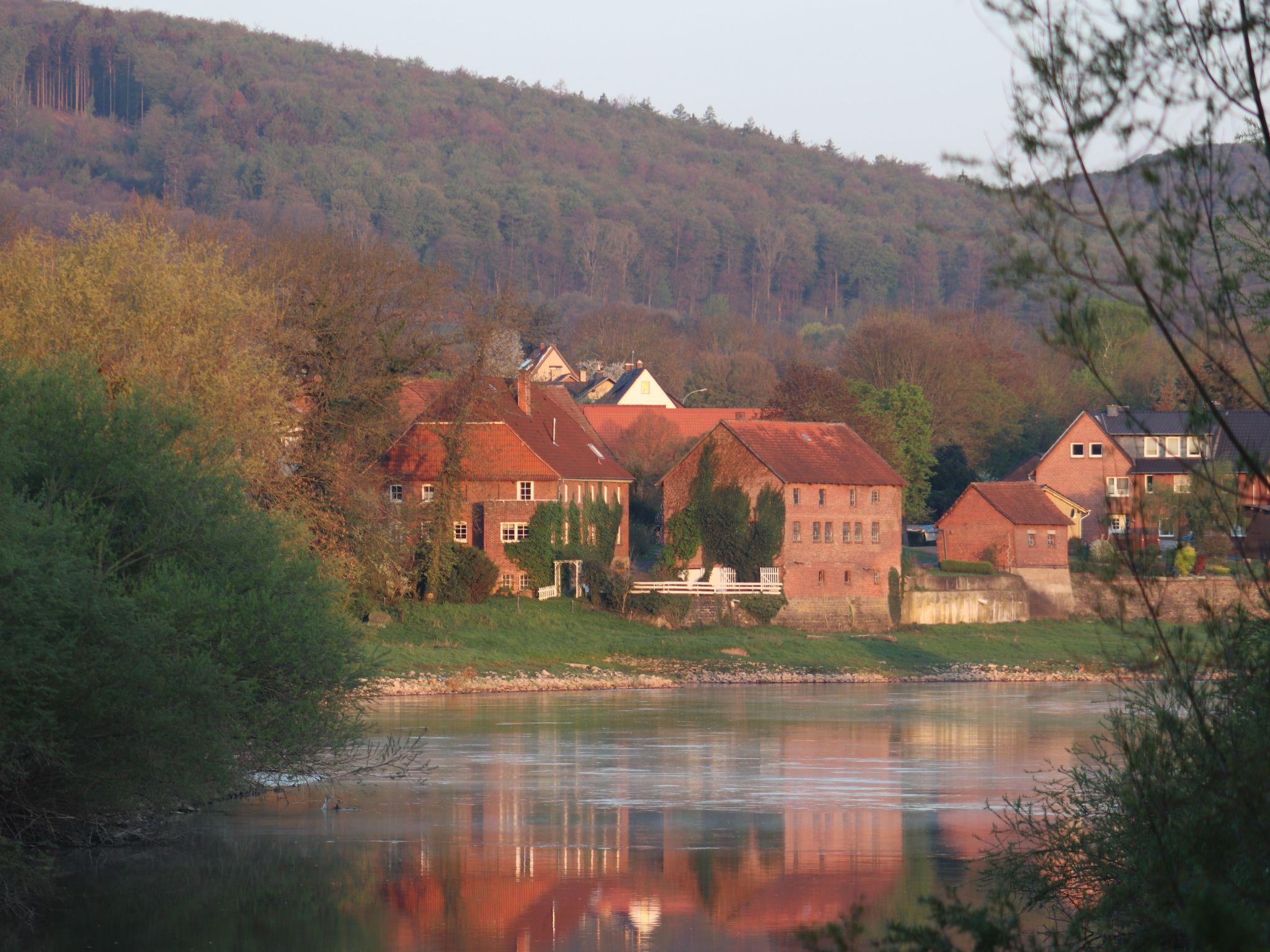 Beautiful walks along the Weser are just a few minutes' walk away. The Weser cycle path is 3 km away. There is a Greek restaurant with a beer garden 600 metres away. The nearest petrol station, which also offers fresh bread rolls and has a drinks market attached, is 2 km away. All the usual supermarkets, other restaurants and banks can be found in Hessisch-Oldendorf, 5 km away.