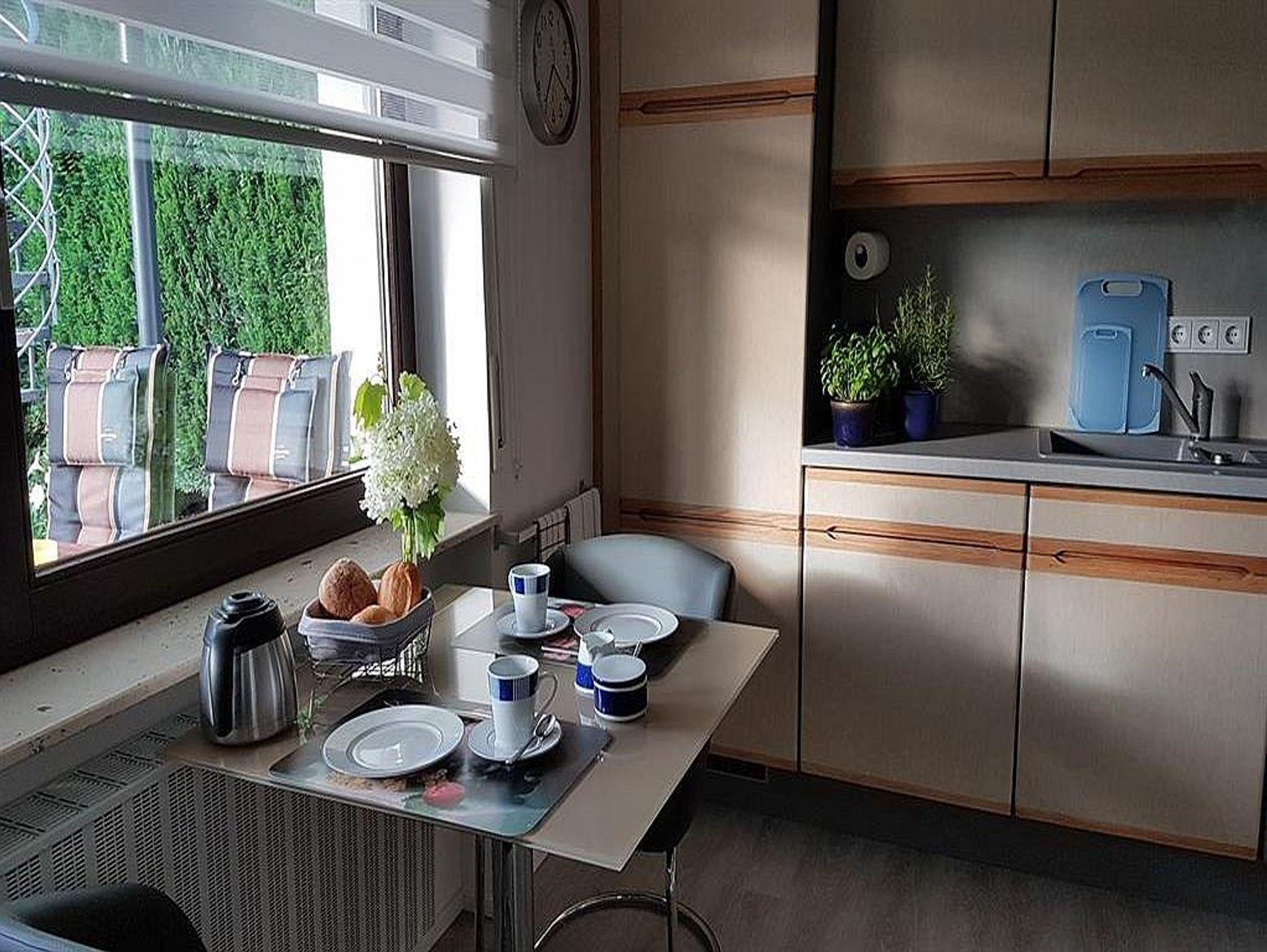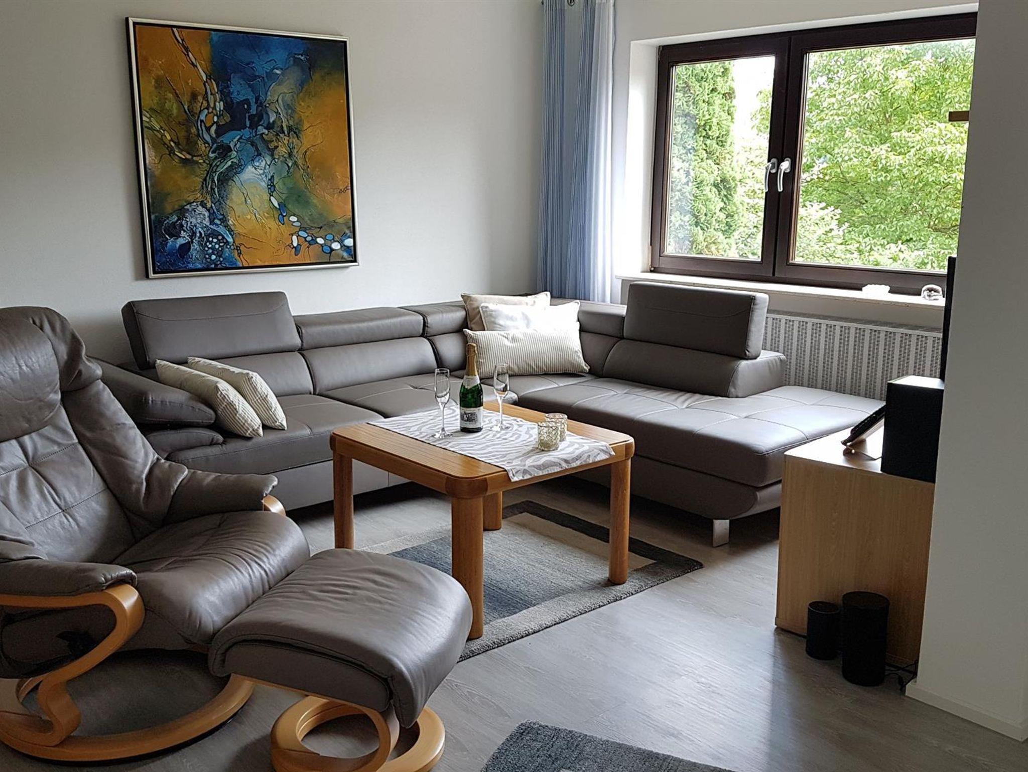 Die großzügige Ferienwohnung ist mit modernem Komfort liebevoll und komplett ausgestattet. Sie erwartet ein topmodernes Bad, eine voll ausgestattete Küche, ein helles gemütliches Wohn-Esszimmer, ein freundliches Schlafzimmer, eine überdachte Terrasse mit offenem Grillkamin und ein weitläufiger Garten in Hanglage.