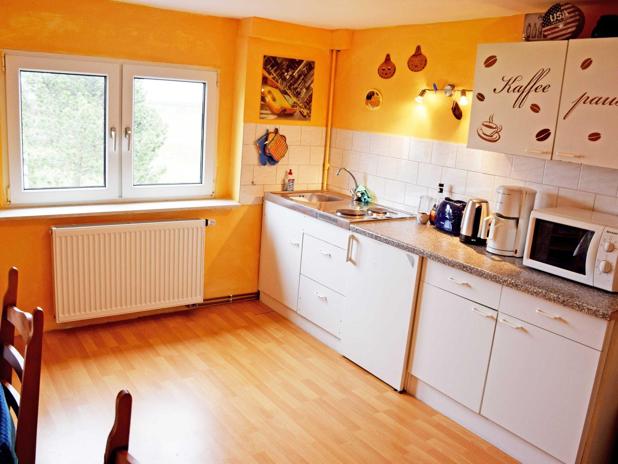 Die Ferienzimmer befinden sind im Dachgeschoss. Jedes der gemütlichen Zimmer verfügt über einen kombinierten Wohn- und Schlafbereich sowie einer Waschgelegenheit im Zimmer. Die großzügige Gemeinschaftsküche bietet viel Platz für Mahlzeiten, Spaß und Spiel. Die Küche ist mit Herd, Mikrowelle, Kühlschrank, Spühle, Geschirr, Töpfe, Toaster, Kaffeemaschine, Wasserkocher, TV und Radio ausgestattet. Weiterhin befinden sich auf dem Flur eine WC sowie eine Dusche mit Waschgelegenheit zu gemeinsamen Nutzung für beide Ferienzimmer.