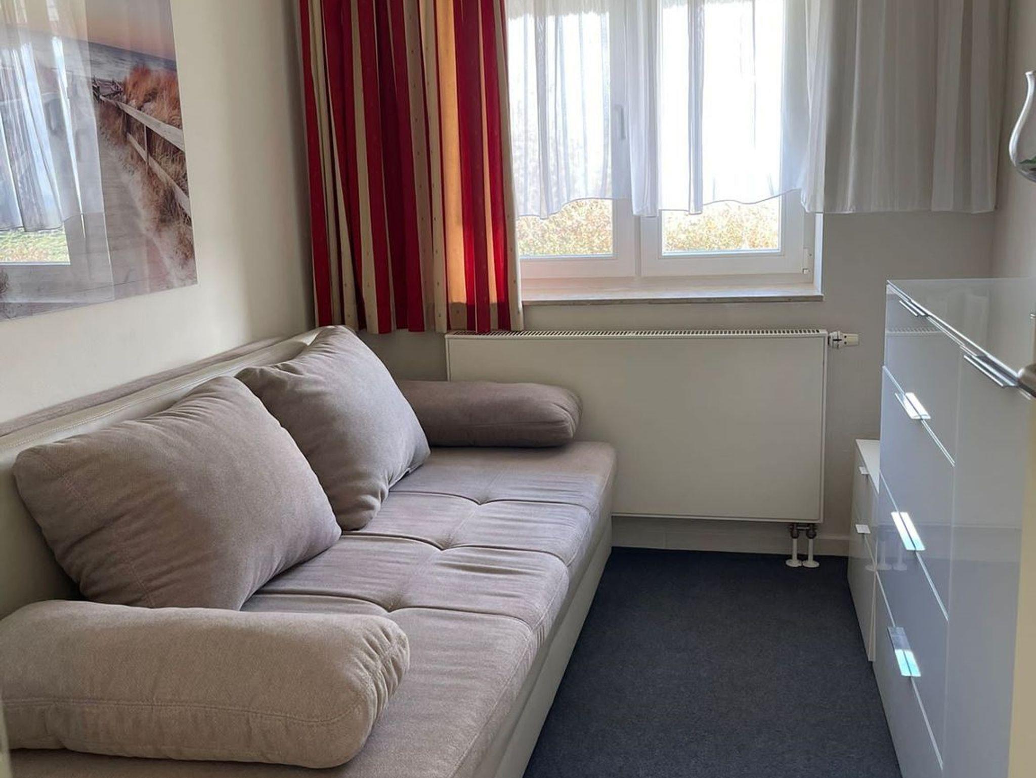 Das großzügige 4-Raum-Appartement befindet sich im Hochparterre des Süderhauses und bietet mit seinen 70 Quadratmetern ausreichend Platz für bis zu 5 Personen.[nbsp] Der kombinierte Wohn- und Essbereich ist mit einem gemütlichen Sofa, einem Flat-TV und einem Esstisch für 5 Personen ausgestattet. Vom angrenzenden Wintergarten und der Terrasse im Grünen können Sie in den Abendstunden einen unvergesslichen Sonnenuntergang bei einem schönen Glas Wein genießen.[nbsp] Die separate Küche lässt keine Wünsche offen und ist mit einem Kühlschrank mit Gefrierfach, Backofen mit Kochfeld mit 2 Platten,[nbsp] Wasserkocher, Toaster, Kaffeemaschine, Gläser, Besteck, sowie Kochutensilien ausgestattet.[nbsp] Das erste und das zweite Schlafzimmer verfügen jeweils über ein bequemes Doppelbett. Im dritten Schlafzimmer befindet sich eine Couch mit Auszieh- und Schlaffunktion.[nbsp] Im Badezimmer sind Dusche, WC und Haartrockner für Sie vorhanden.