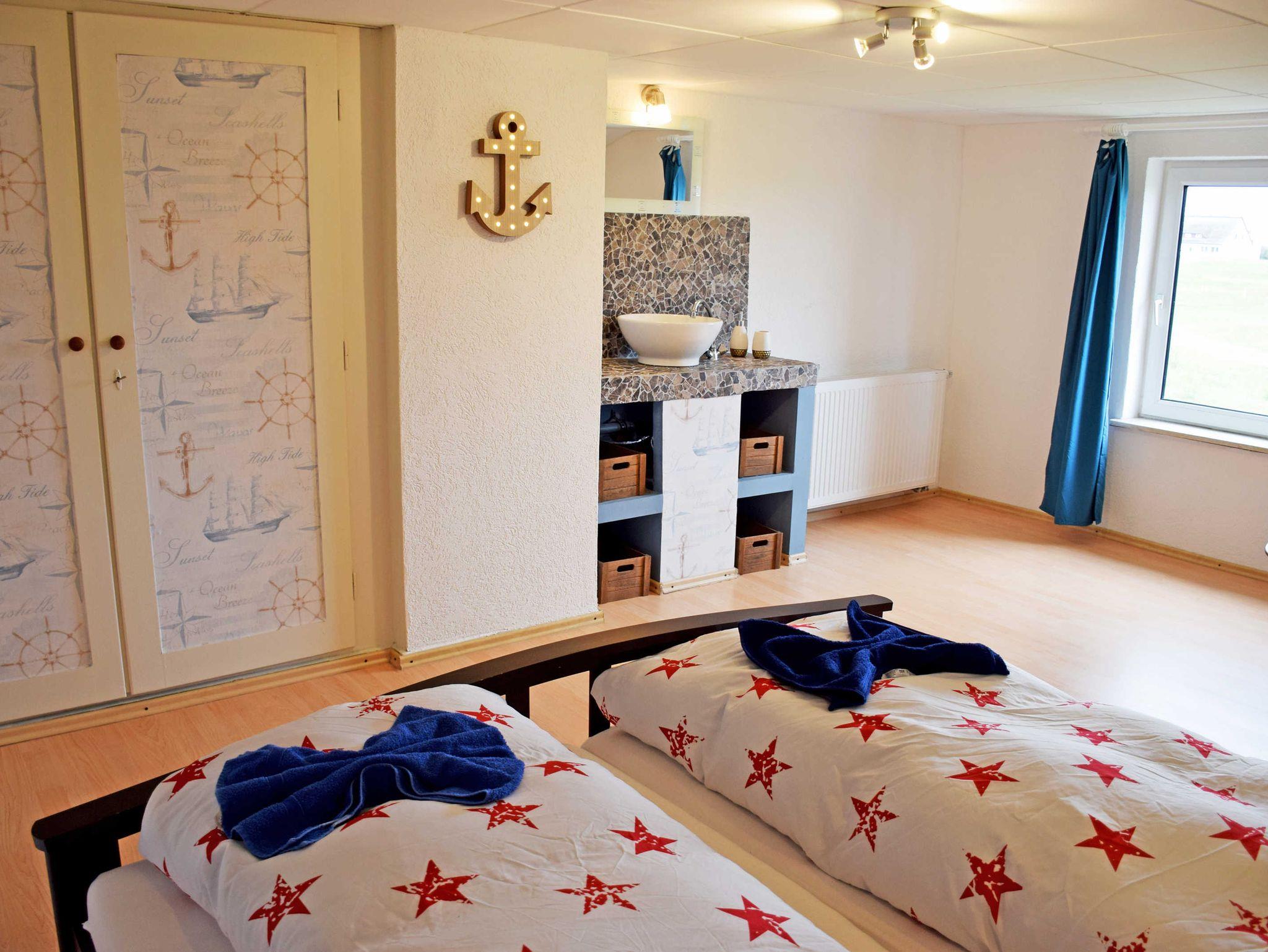Die Ferienzimmer befinden sind im Dachgeschoss. Jedes der gemütlichen Zimmer verfügt über einen kombinierten Wohn- und Schlafbereich sowie einer Waschgelegenheit im Zimmer. Die großzügige Gemeinschaftsküche bietet viel Platz für Mahlzeiten, Spaß und Spiel. Die Küche ist mit Herd, Mikrowelle, Kühlschrank, Spühle, Geschirr, Töpfe, Toaster, Kaffeemaschine, Wasserkocher, TV und Radio ausgestattet. Weiterhin befinden sich auf dem Flur eine WC sowie eine Dusche mit Waschgelegenheit zu gemeinsamen Nutzung für beide Ferienzimmer.