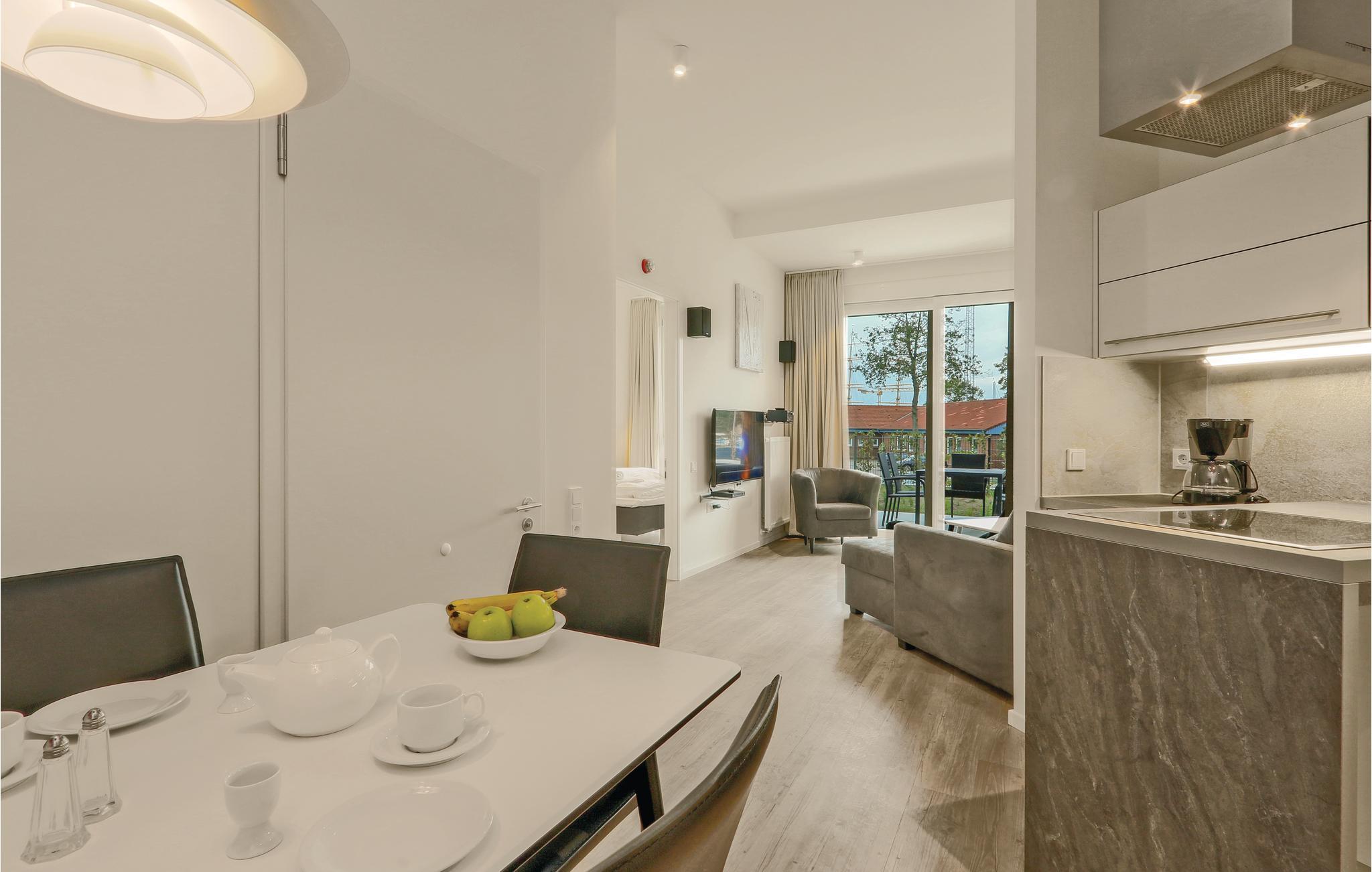Det moderne tekøkken tilbyder rigelig plads til madlavning og er udstyret med mærkevarer af høj kvalitet. Kaffeelskere finder en Nespresso-maskine (medbring venligst egne kapsler), samt en termokande og en drypper til at brygge jeres egen kaffe, hvis I foretrækker klassisk filterkaffe. Det moderne badeværelse kan fremvise lejlighedens højdepunkt: en stor regnbruser. Her kan I nyde et forfriskende brusebad efter en lang gåtur langs Østersøen.