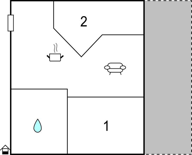 Opholdsstue/køkken - 1 Soveplads. (Sofa, madras eller lignende).