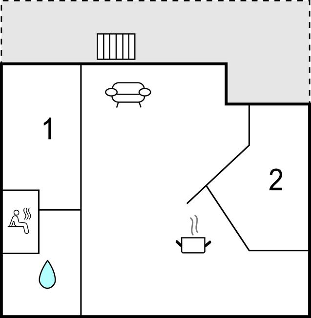 Opholdsstue/køkken - 2 Sovepladser. (Sofa, madras eller lignende).