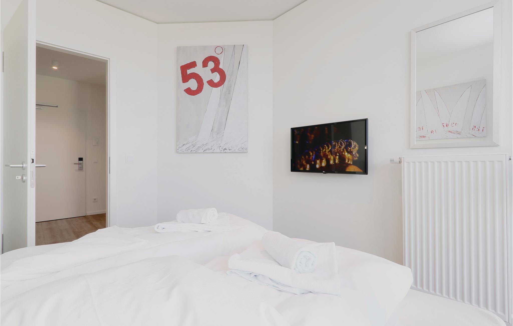 Jeres lejlighed ligger på første etage og har et separat soveværelse med en hyggelig dobbeltseng. I stuen kan I slappe af og nyde varmen og lyset fra biokaminen. Naturligvis er ferielejligheden i Travemünde Waterfront udstyret med moderne entertainment-system med bluray, musikanlæg med mp3-indgang samt to fjernsyn. I stuen finder I også en sovesofa med to sovepladser. Alle værelserne er indrettet i skandinavisk stil og udstyret med store vinduer fra gulv til loft, som sørger for et dejligt lysindfald.