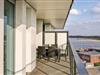 Jeres ferielejlighed ligger på 4. sal i anlægget med en fantastisk udsigt. Herfra kan I se over Priwall, sandstranden, floden Traves udmunding og de mange skibe der sejler forbi. Her er to soveværelser, hver med en bekvem dobbeltseng. I stuen kan I gøre jer det hyggeligt foran kaminen der opvarmes med bio-ætanol. Der er også en ekstra sovesofa med to sovepladser i stuen. Det er kun muligt at stille barnesengen op i stuen, da der ikke er plads i soveværelset.