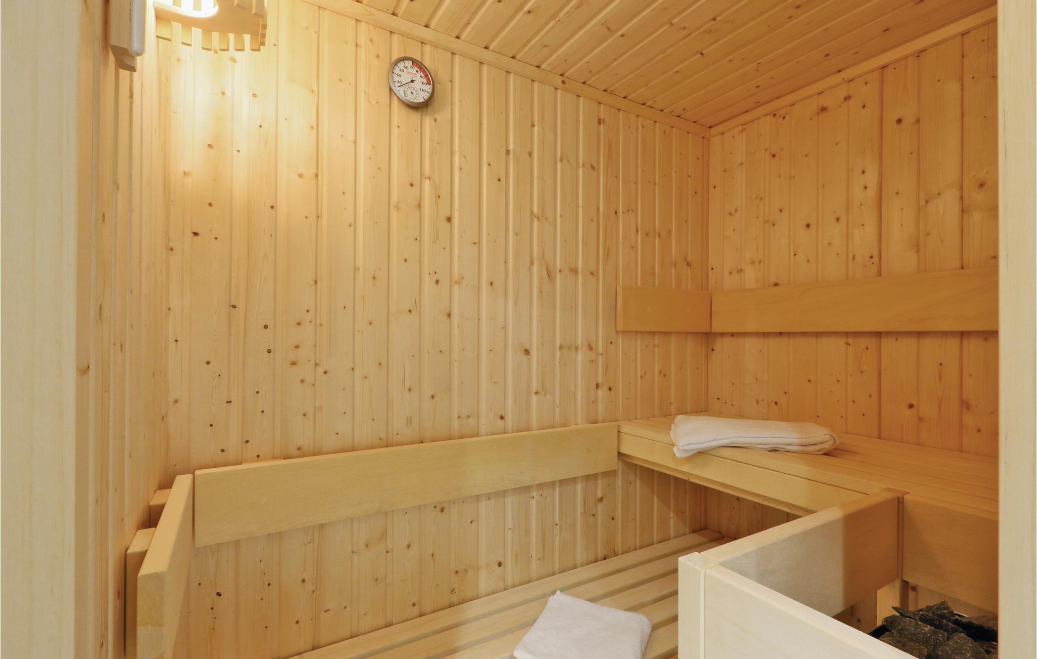 Badeværelset er et privat wellness anlæg. Her kan I nyde at sidde i saunaen efter en lang tur langs vandet. Desuden er der et dampbad med regnvandsbruser.