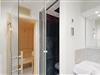 De to badeværelser er et privat wellness anlæg. Her kan I nyde at sidde i saunaen efter en lang tur langs vandet. Desuden er der et dampbad med regnvandsbruser og en whirlpool hvor der kan sidde to ad gangen og slappe af.