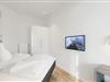 Lejligheden er indrette i minimalistisk hyggelig skandinavisk stil og vinduerne der går fra gulv til loft lukker masser af lys ind.