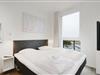 Lejligheden er indrettet i minimalistisk hyggelig skandinavisk stil og vinduerne der går fra gulv til loft lukker masser af lys ind.