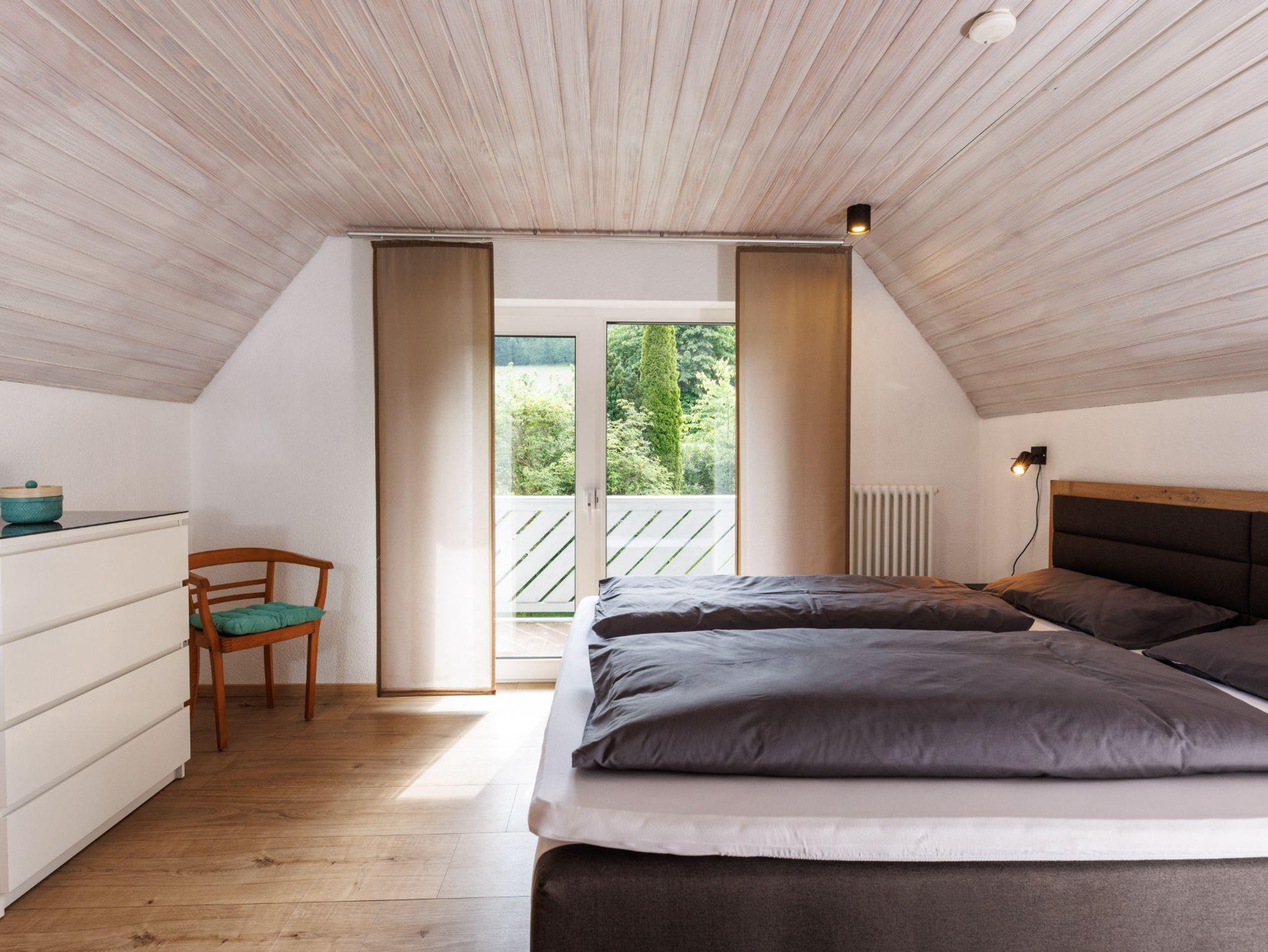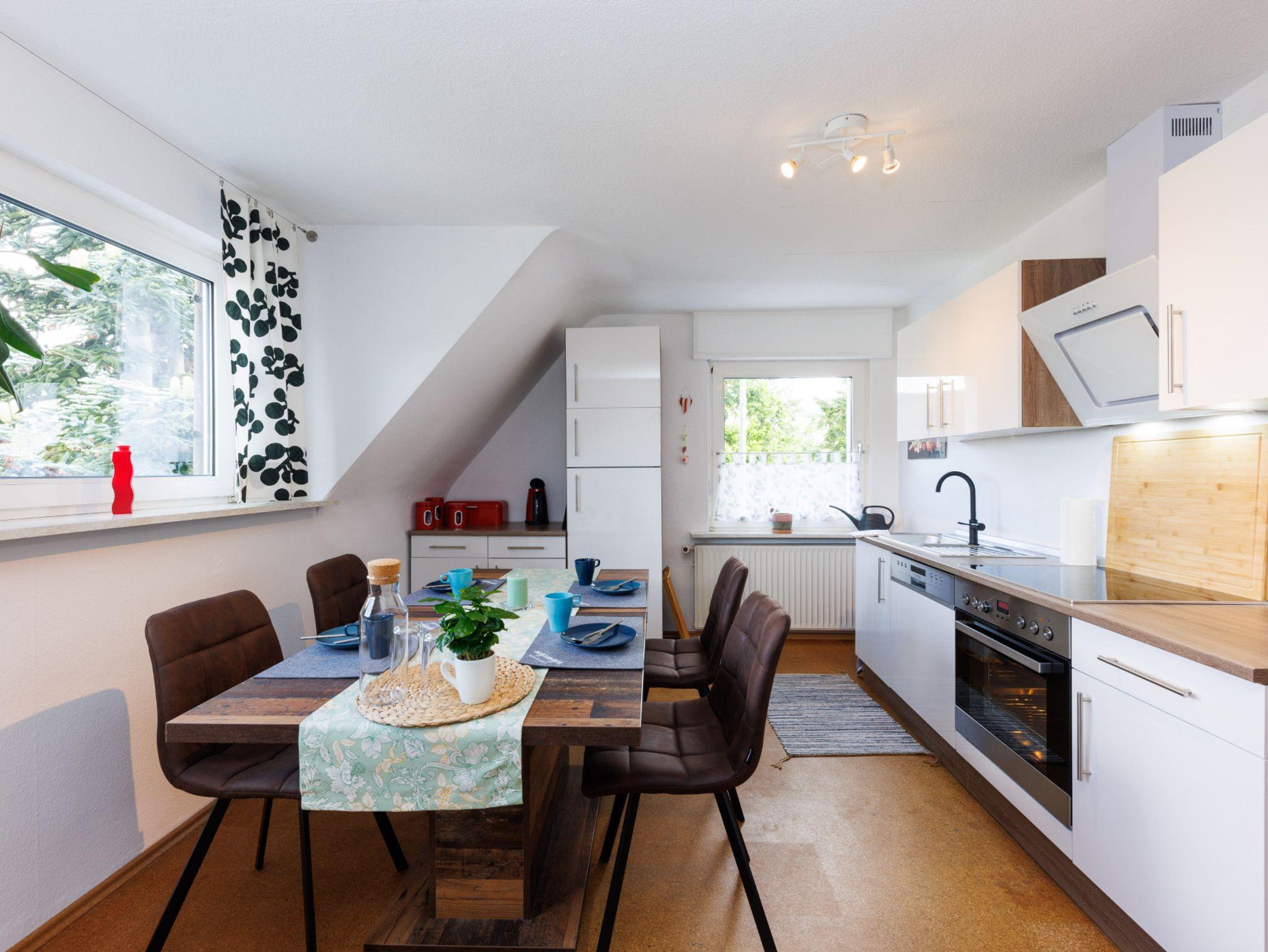 Im Urlaub Zuhause! Im Frühjahr 2022 neu eingerichtete und schön gelegene Dachgeschosswohnung. Drei Schlafzimmer (Zwei Schlafzimmer mit Doppelbett, ein Schlafzimmer mit Schlafsofa), ein großes Wohnzimmer mit Essbereich, Sofa und Smart-TV sowie Küche, Bad mit Dusche und Badewanne und separates WC stehen für bis zu 6 Personen zur Verfügung. Verschiedene Services (Lademöglichkeit E-Bikes...) unterstützen das Wohlfühlen und die Erholung. Helle und modern eingerichtete Zimmer erwarten unsere Gäste.