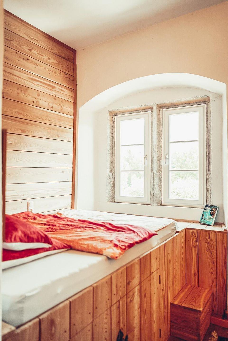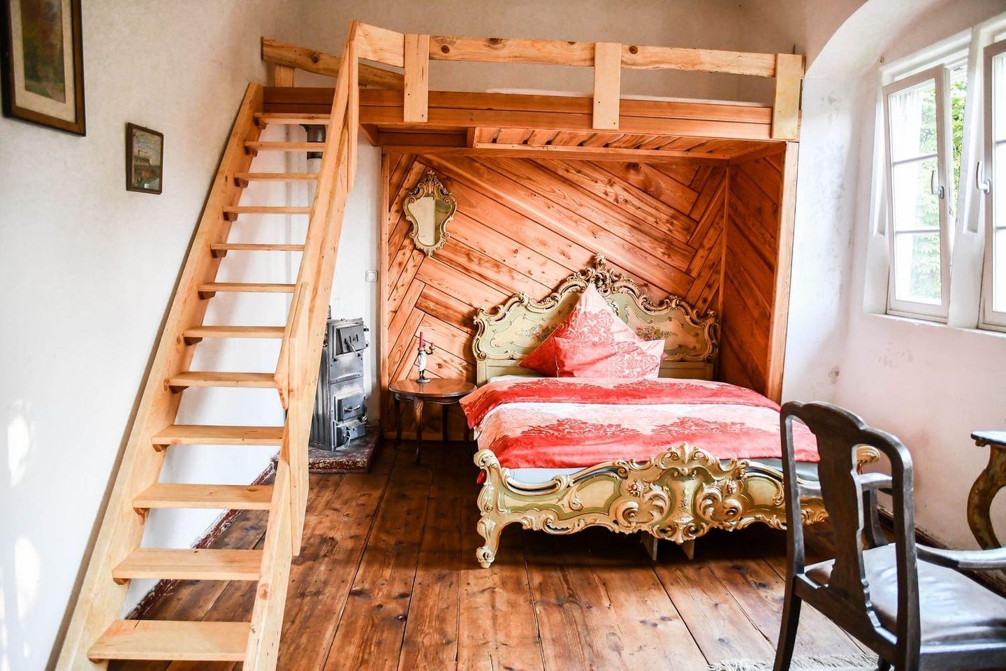 Neben der großzügigen Suite selbst stehen ein charmantes Lesefoyer mit Büchern und Schreibsekretär für stille Stunden im 1. Stock sowie der weitläufige Schlosshof mit Feuerstelle und Grill, Bühne, überdachten Sitzmöglichkeiten, Pavillon, Schaukeln, Liegestühlen und Spielmöglichkeiten für Kinder zur Verfügung.