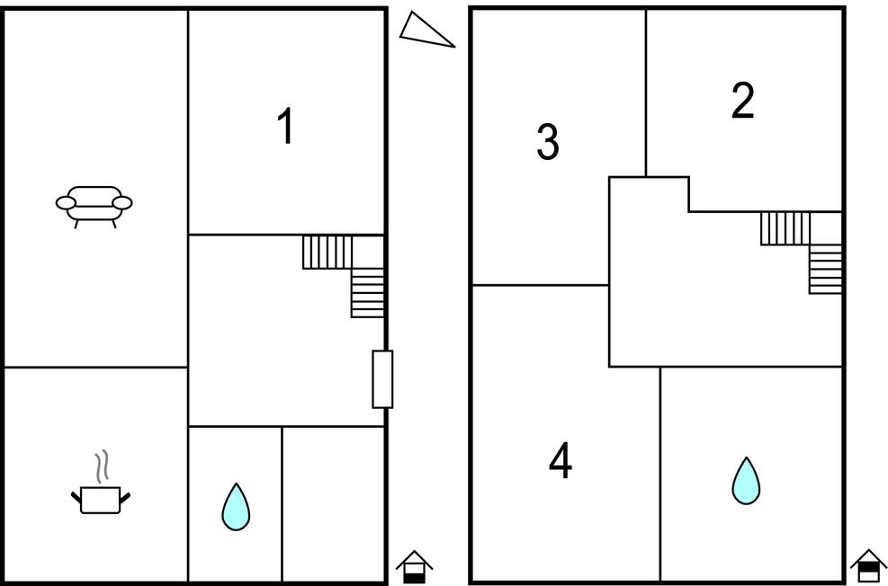 Ferieboligen er komfortabelt indrettet. Værelserne strækker sig over stueetagen og første sal. Denne kan opnås via en vindeltrappe. Huset har fire separate soveværelser. Der er skråvægge i huset.