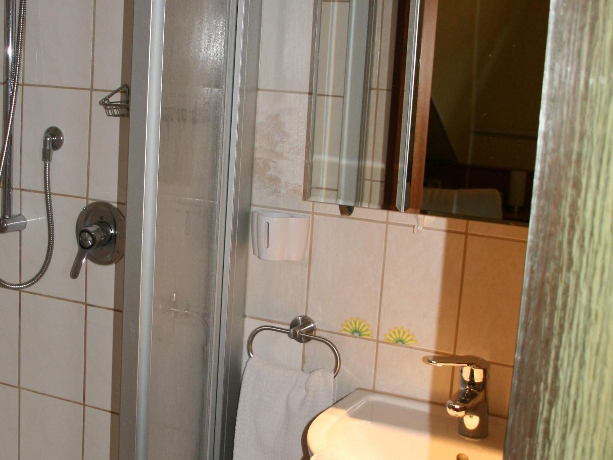 Die Badezimmer sind mit Dusche und WC.
