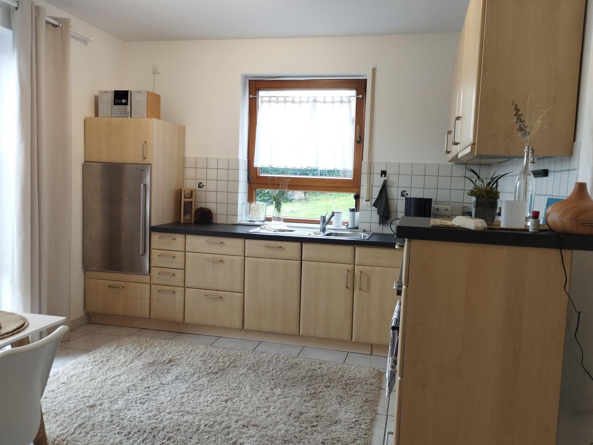Die voll ausgestattete Küche mit E-Herd, Kühlschrank und Spülmaschine lässt keine Wünsche offen.