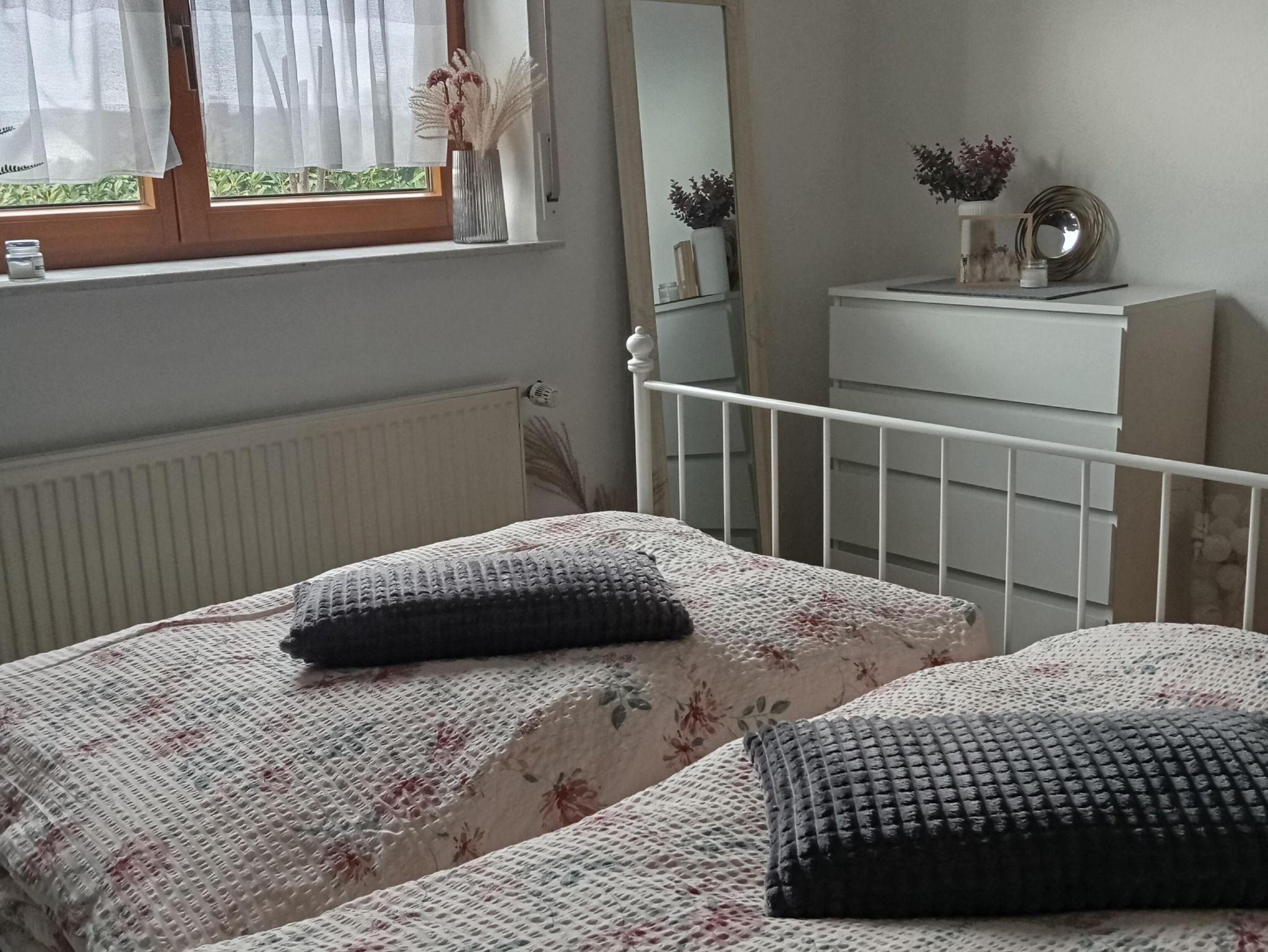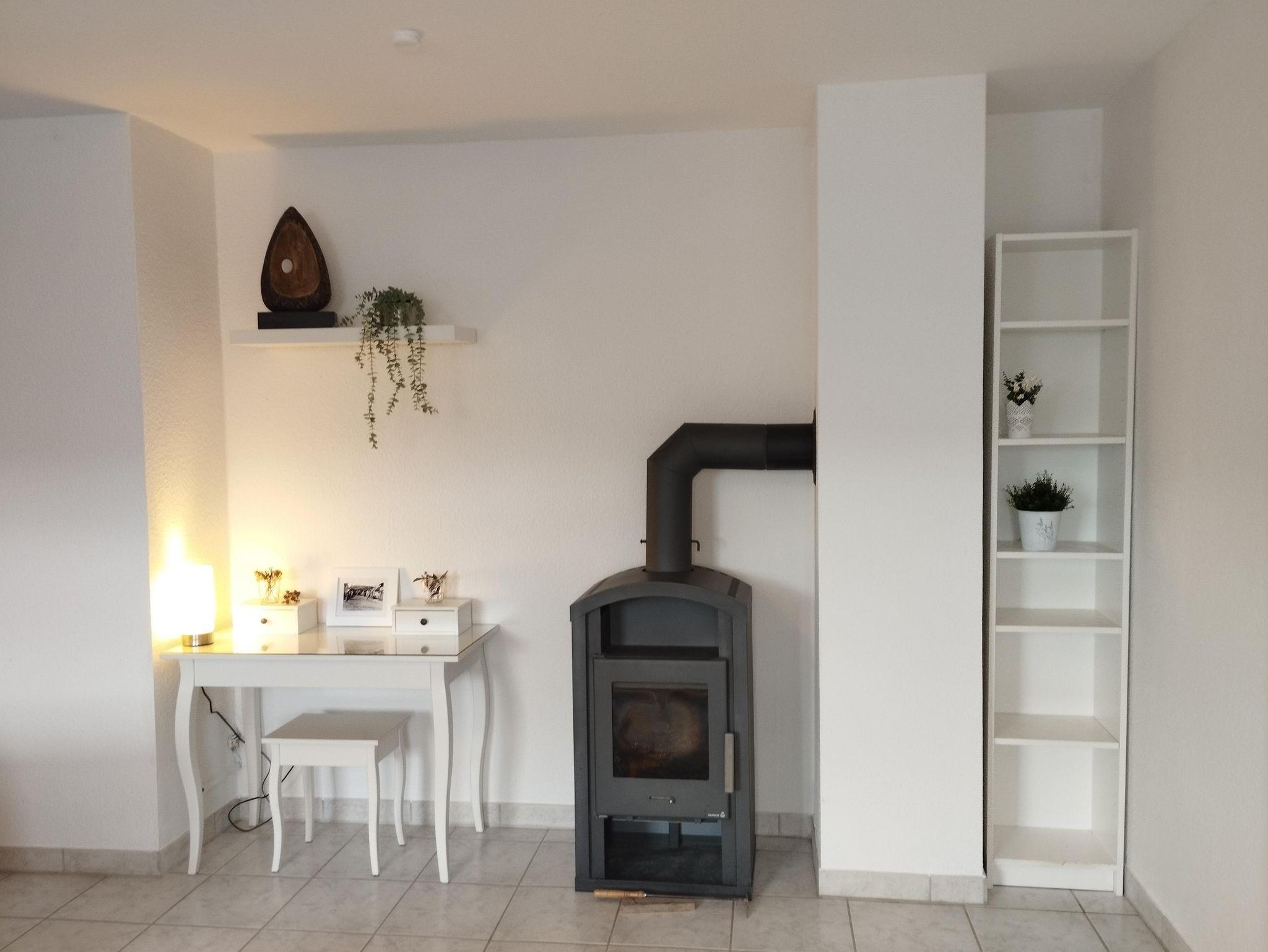 Die gemütlich eingerichtete Ferienwohnung verfügt über einen Schlafraum mit Doppelbett , Schrank und eigenem SAT TV , ein Wohnzimmer mit einem Sofa mit grosser Sitz- und Liegefläche , SAT TV und einem Ofen , der durch Wärme und Behaglichkeit Ihren Aufenthalt verschönert.