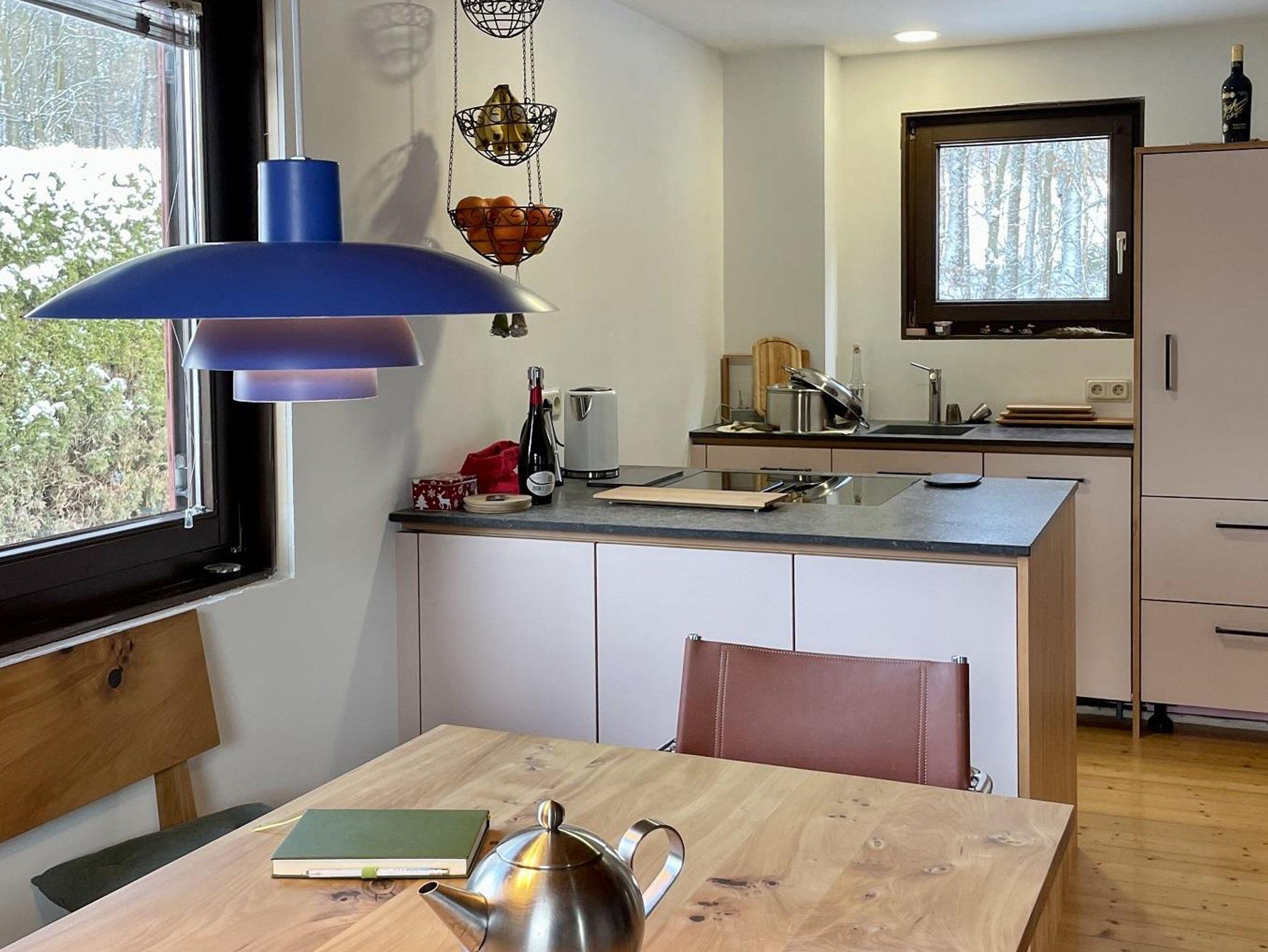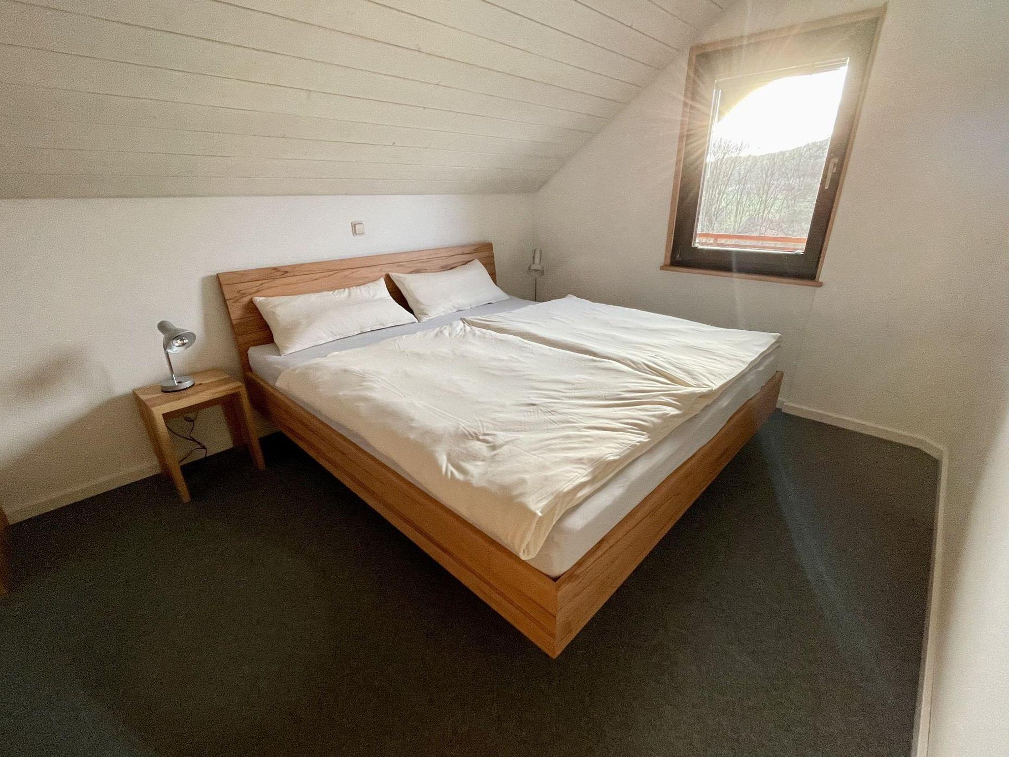Im OG befinden sich zwei Schlafzimmer, jew. mit Doppelbett (160/200 u.180/200cm) Hier schlafen Sie in echten Naturbettsystemen und mit zertifizierter Naturbettwäsche. Vom Schlafzimmer erreichen Sie den oberen Balkon. Das Bad bietet mit Waschbecken, WC, bodenebener Dusche und Wand/Fußbodenheizung angenehmen Komfort. Die gesamte Ausstattung besteht aus hochwertigen Massivholzmöbeln. Die Modernisierung in 2022 wurden mit natürlichen Materialien und unter dem Aspekt der Regionalität und Nachhaltigkeit gestaltet. Zum Haus gehört ein großes Grundstück mit Wiese, Obstbäumen und einer holzbefeuerten Gartensauna. Zur weiteren Ausstattung gehören: Spülmaschine, Backofen, Sat-TV, Carport, Rauchmelder, Gartenmöbel, W-Lan, Ladestation für E-Fahrzeuge, Photovoltaik-Anlage und Fahrradschuppen.