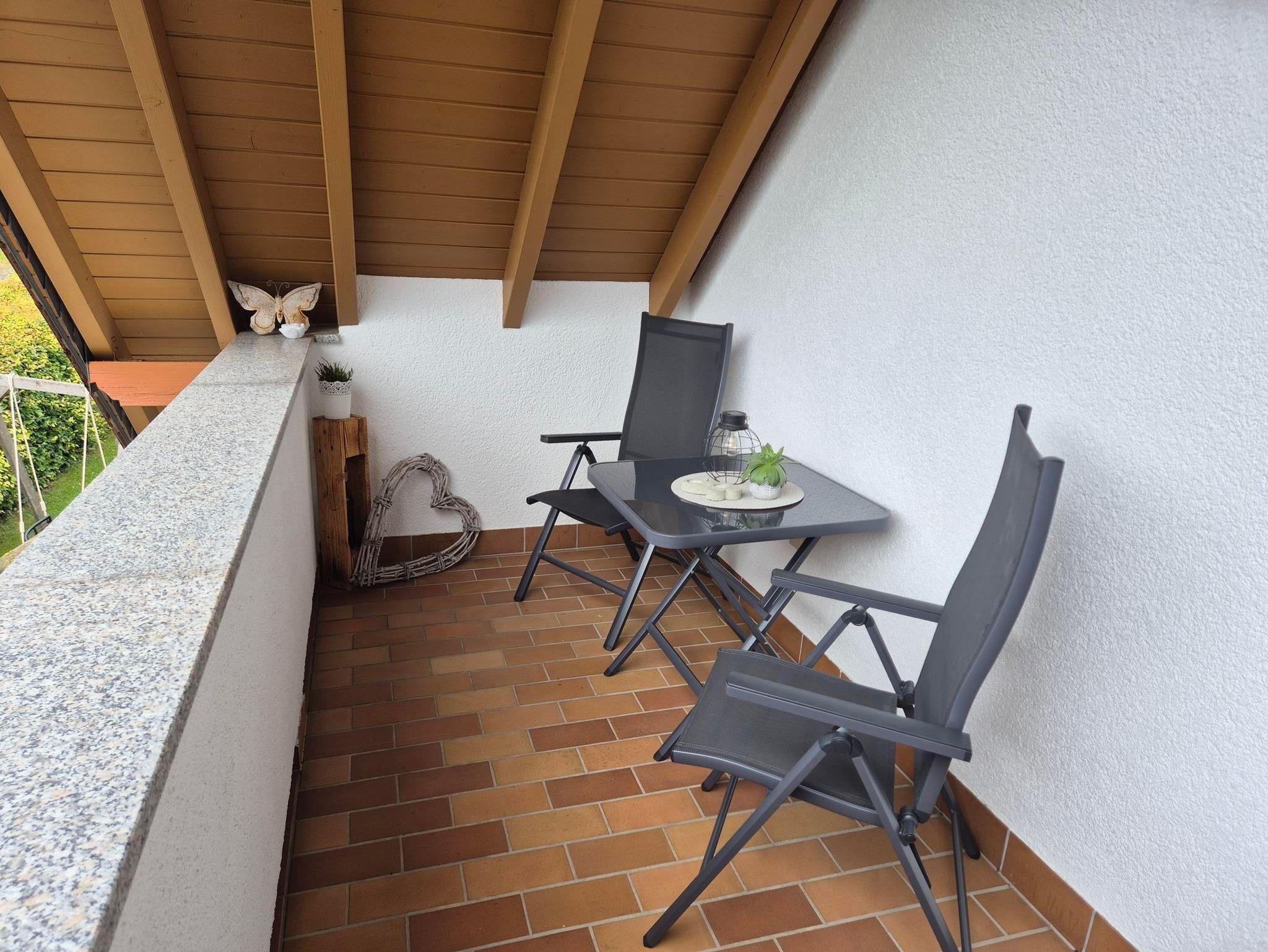 Genießen Sie die Ruhe auf dem überdachten Balkon, lassen Sie die Seele baumeln und bleiben Sie dank kostenfreiem WLAN stets verbunden.
