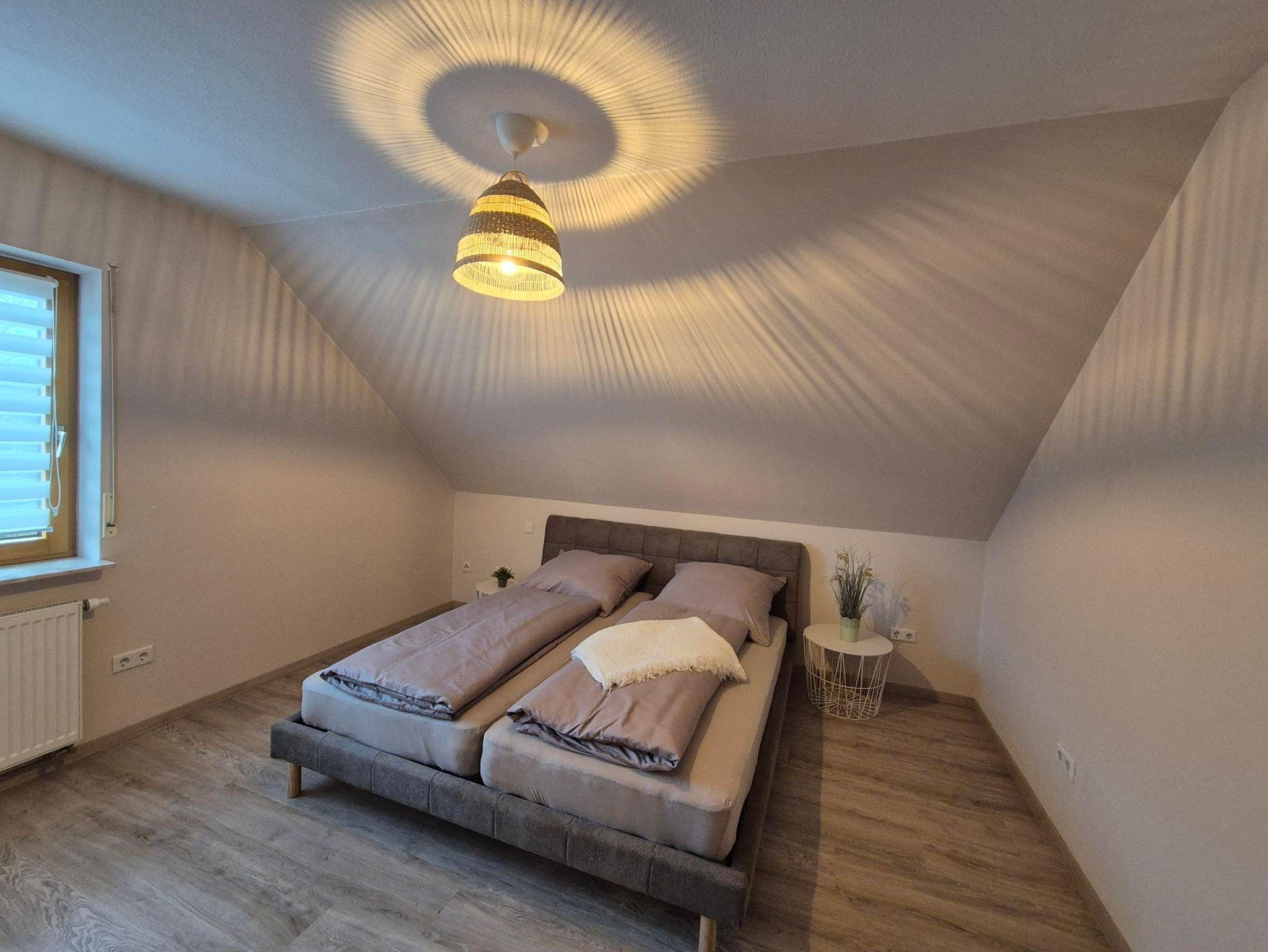 Unsere Ferienwohnung vereint modernen Komfort mit gemütlichem Ambiente und bietet auf großzügigen 90 m² Platz für bis zu vier Erwachsene. Zwei stilvoll eingerichtete Schlafzimmer sowie ein gemütliches Kinderzimmer sorgen für erholsame Nächte: Ein Doppelbett (1,80 x 2,00 m) im ersten Schlafzimmer, ein weiteres Doppelbett (1,60 x 2,00 m) im zweiten Schlafzimmer und ein Einzelbett (0,90 x 2,00 m) im Kinderzimmer bieten höchsten Schlafkomfort.